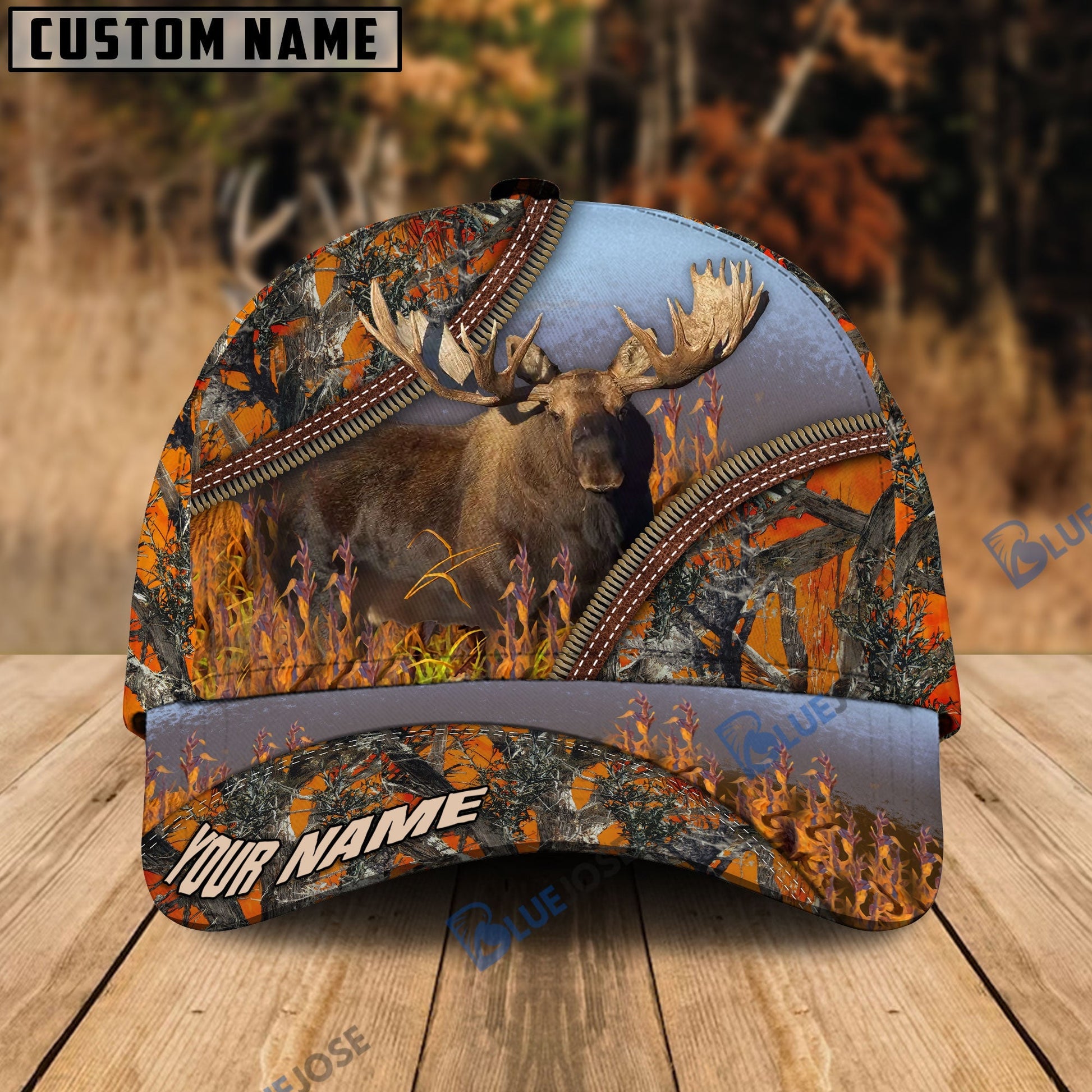 BlueJose Moose Hunting Forest Pattern Personalized Name Cap