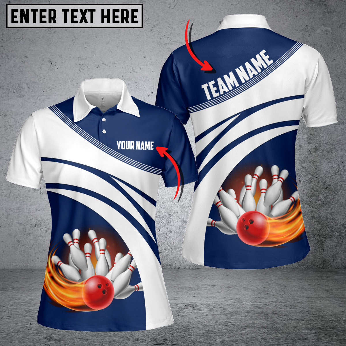 BlueJose Navy Bowling Ball Premium Customized Name 3D Shirt For Women