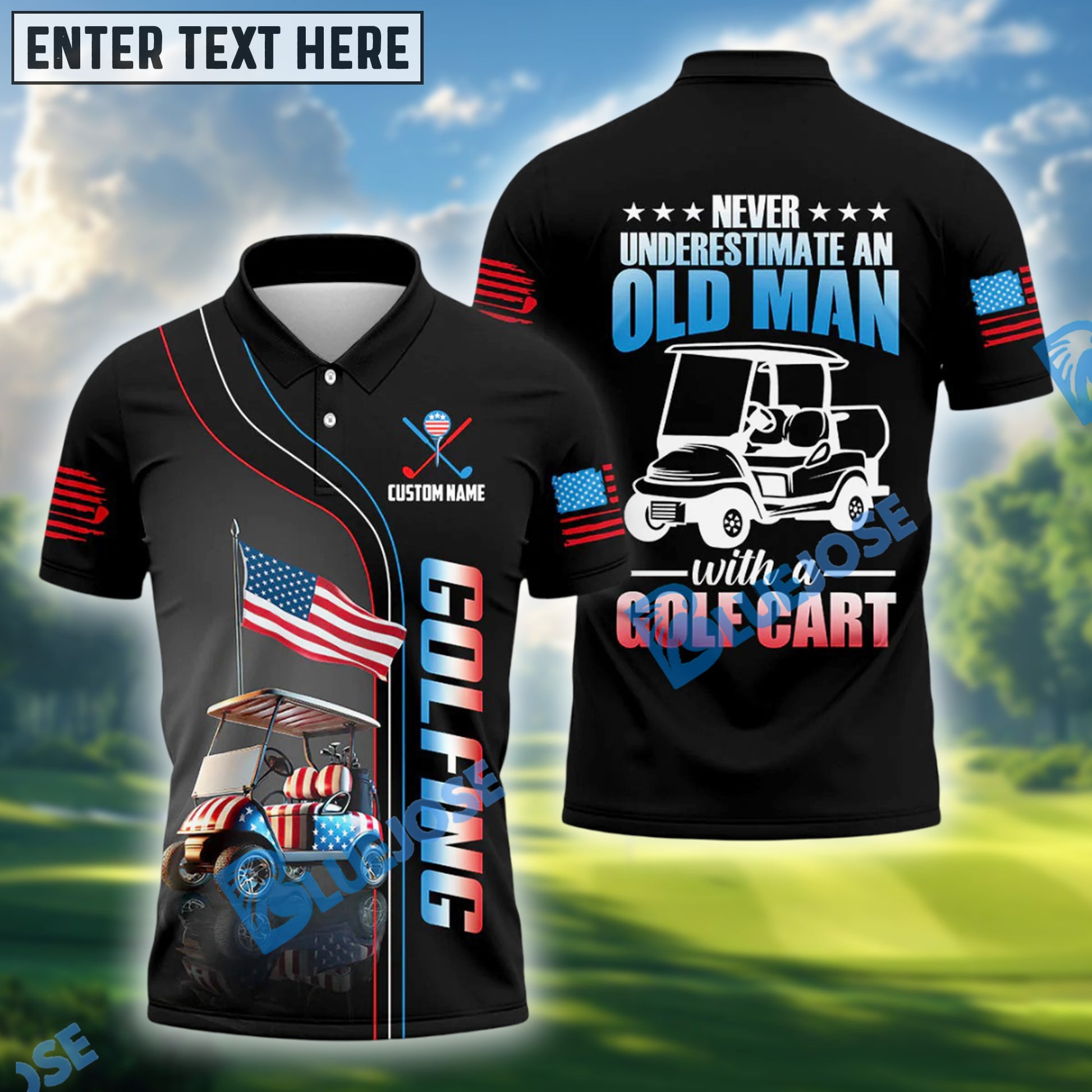 BlueJose Never Underestimate An Old Man Funny Golf Shirt, Custom Name Golf 3D Shirts
