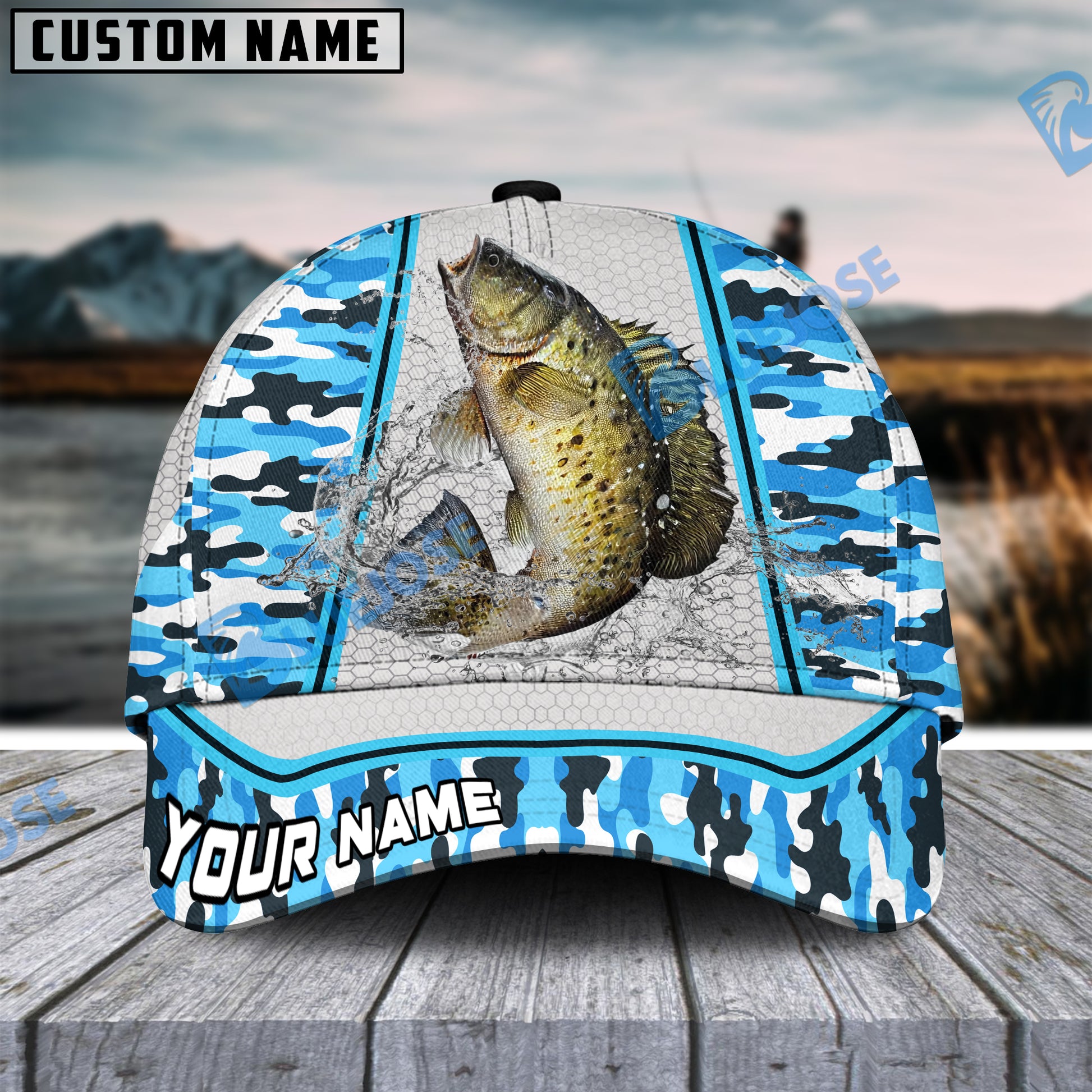 BlueJose Personalized Crappie Fishing Light Blue Camo Sport Classic Cap