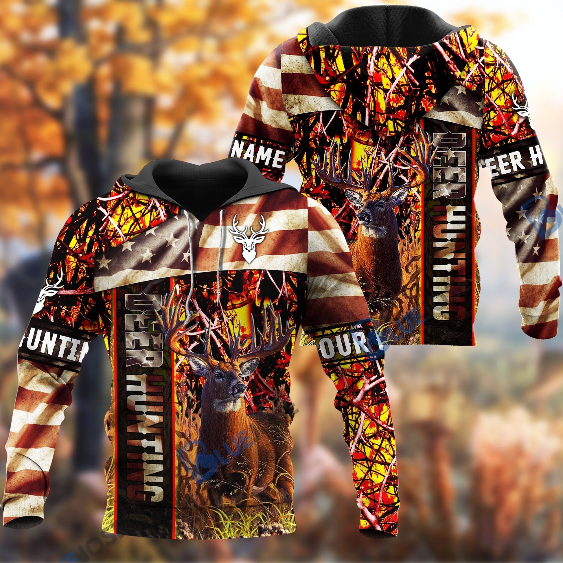 BlueJose Personalized Name Deer Sun Orange Hunting Pattern 3D Shirts