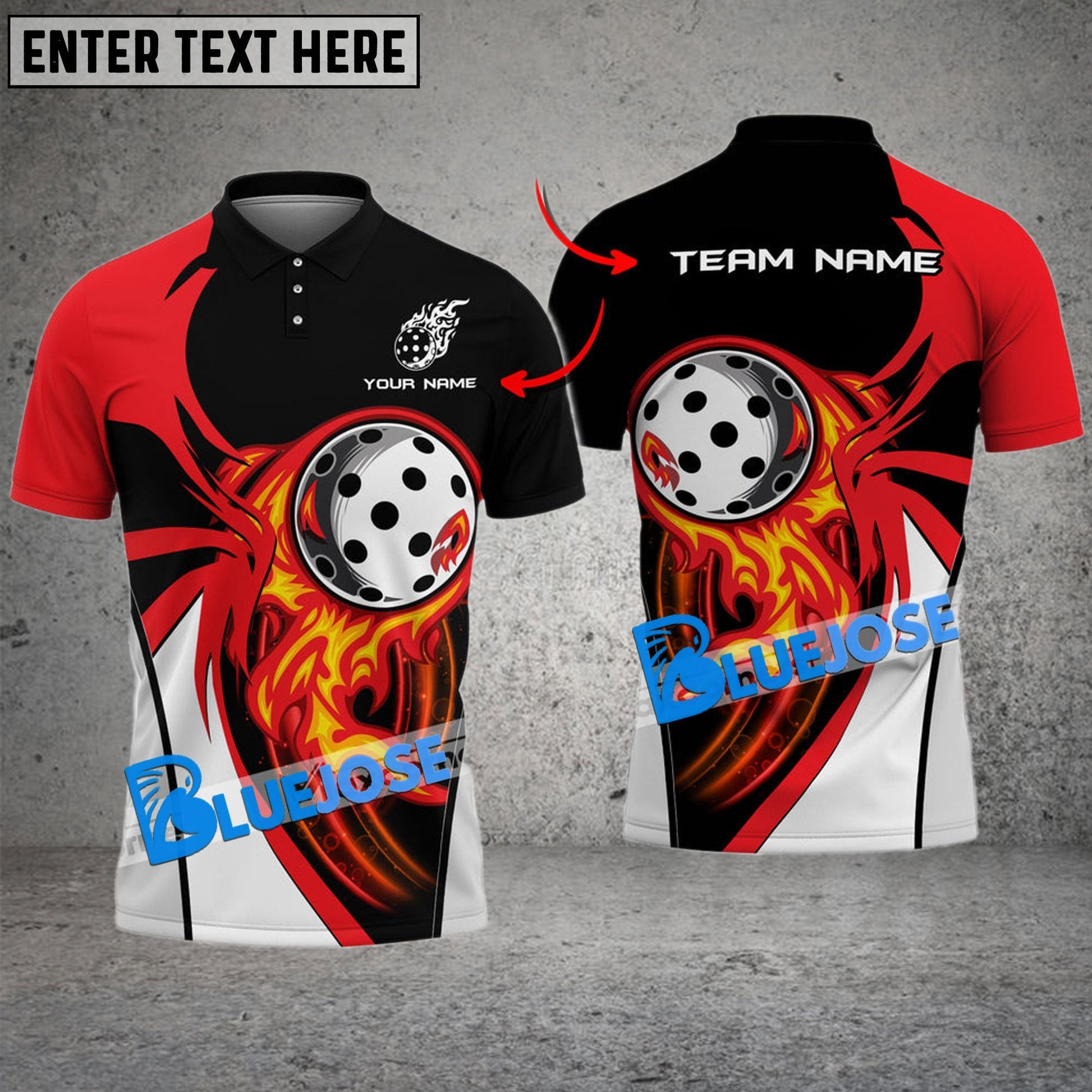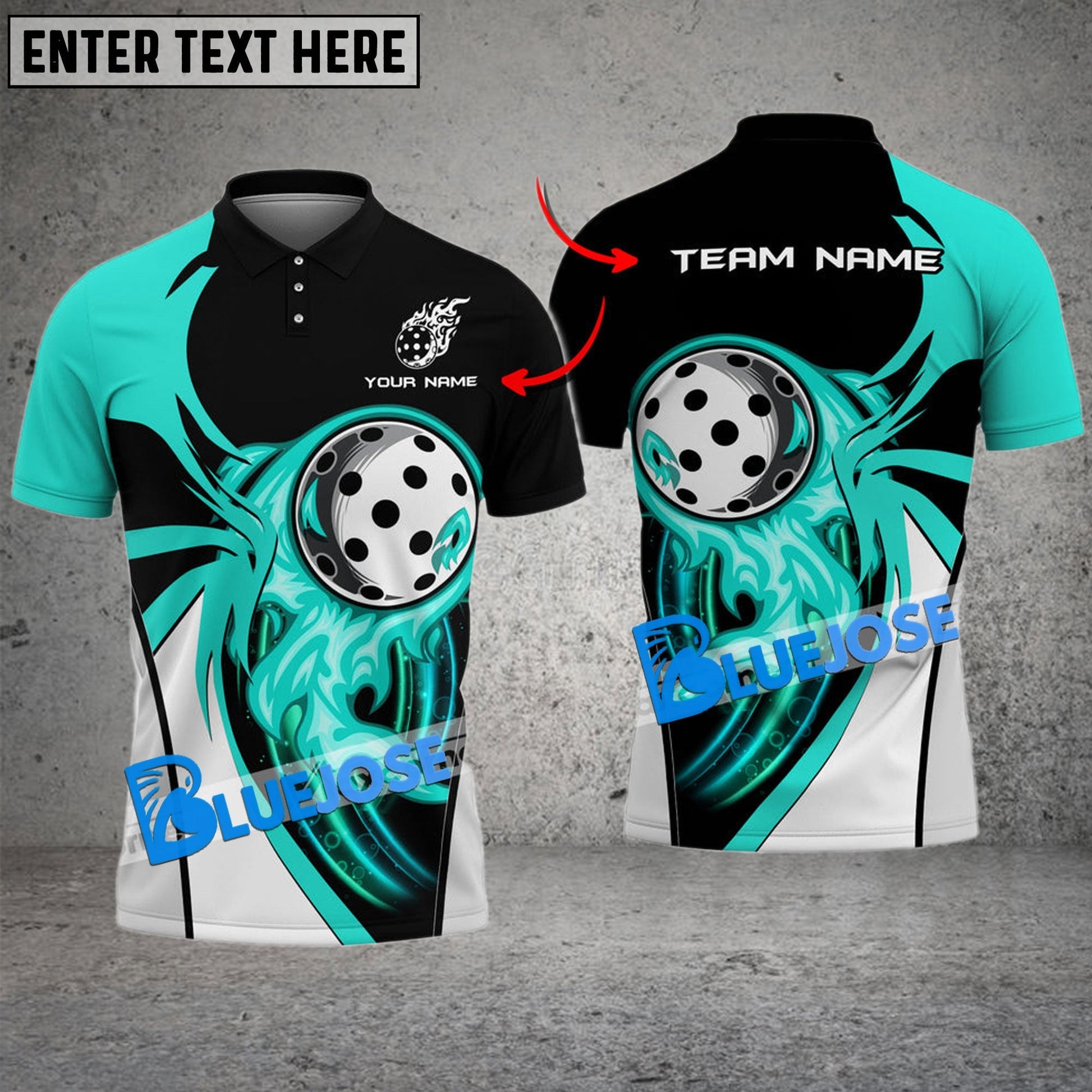 BlueJose Pickleball Curved Flame Personalized Name, Team Name Unisex Shirt (4 Colors)