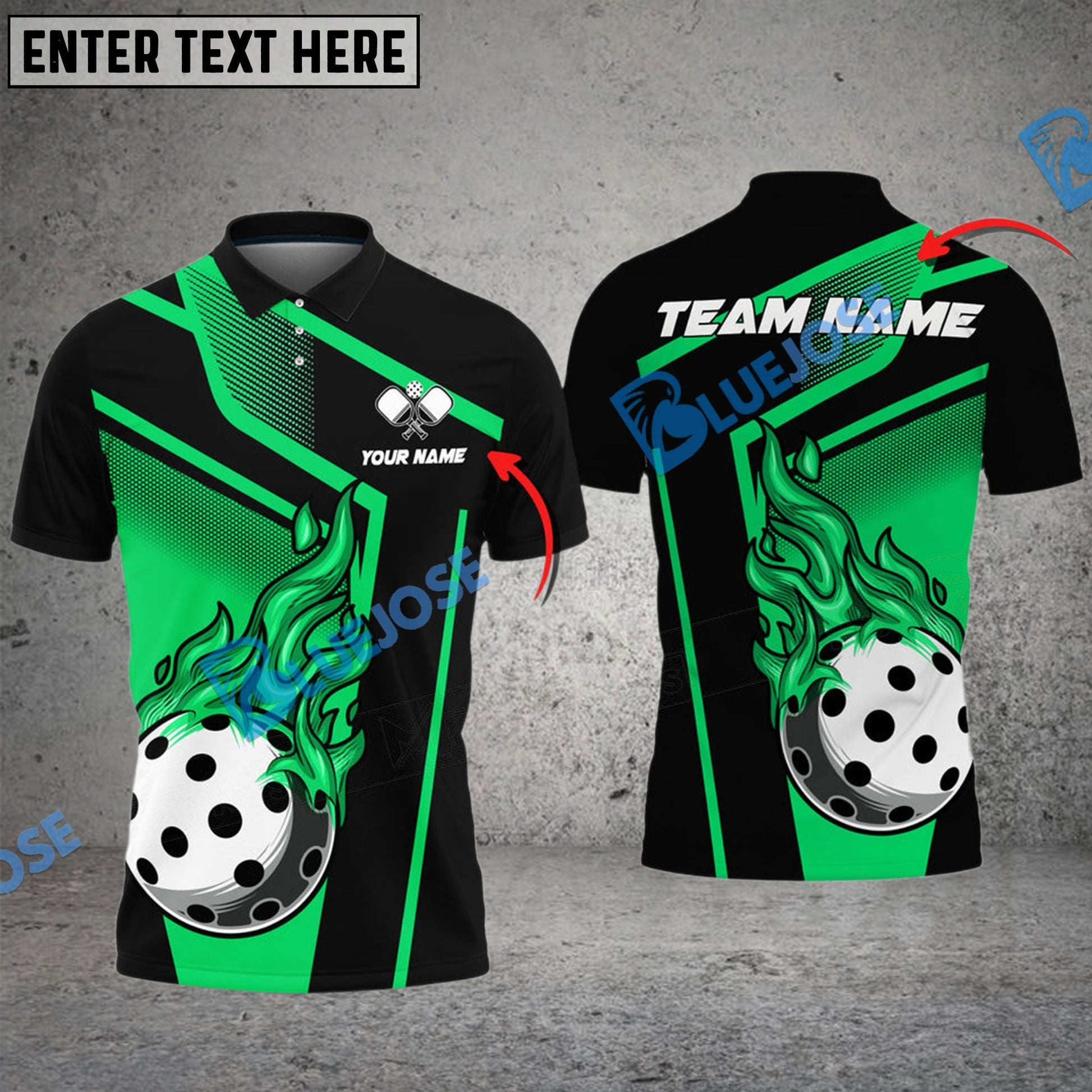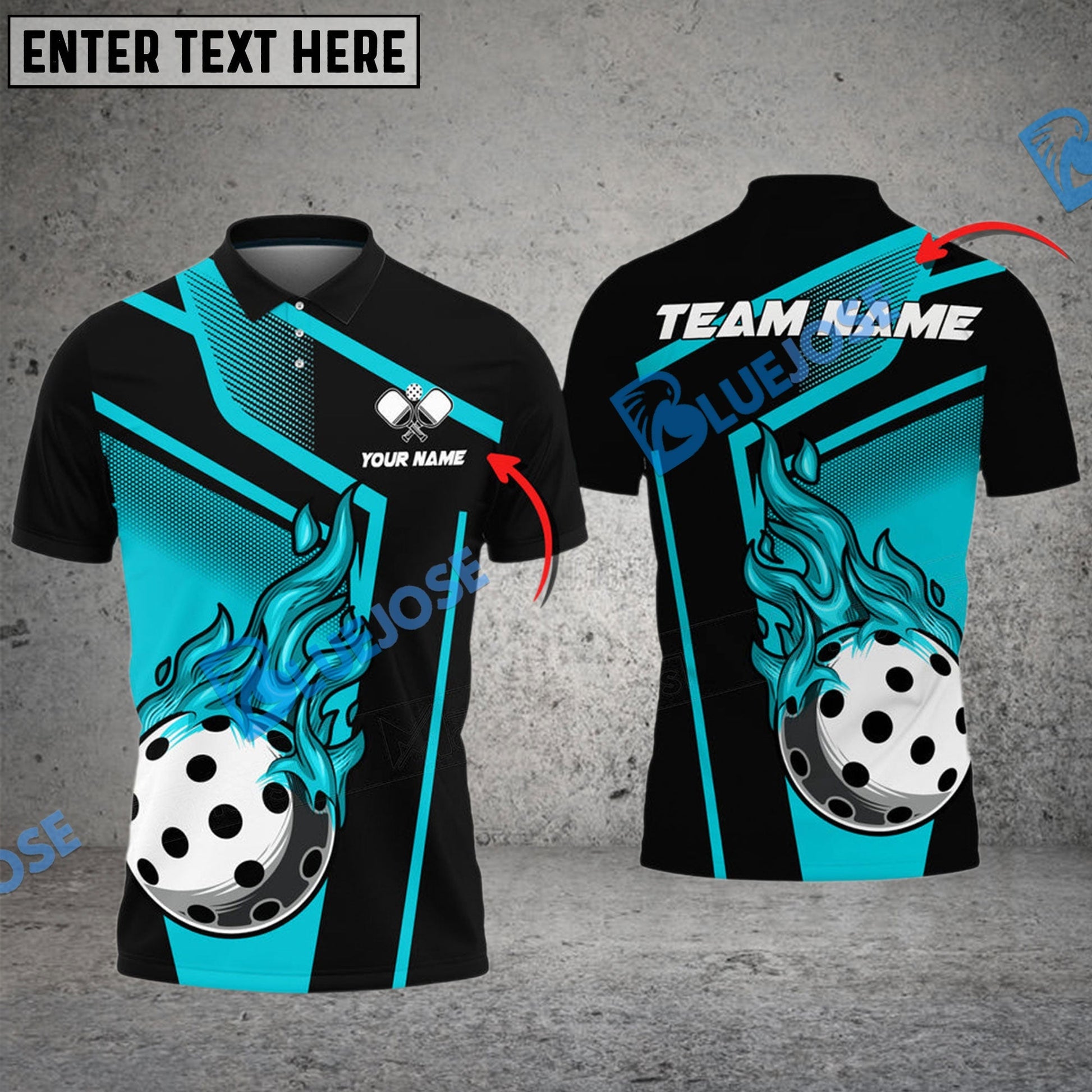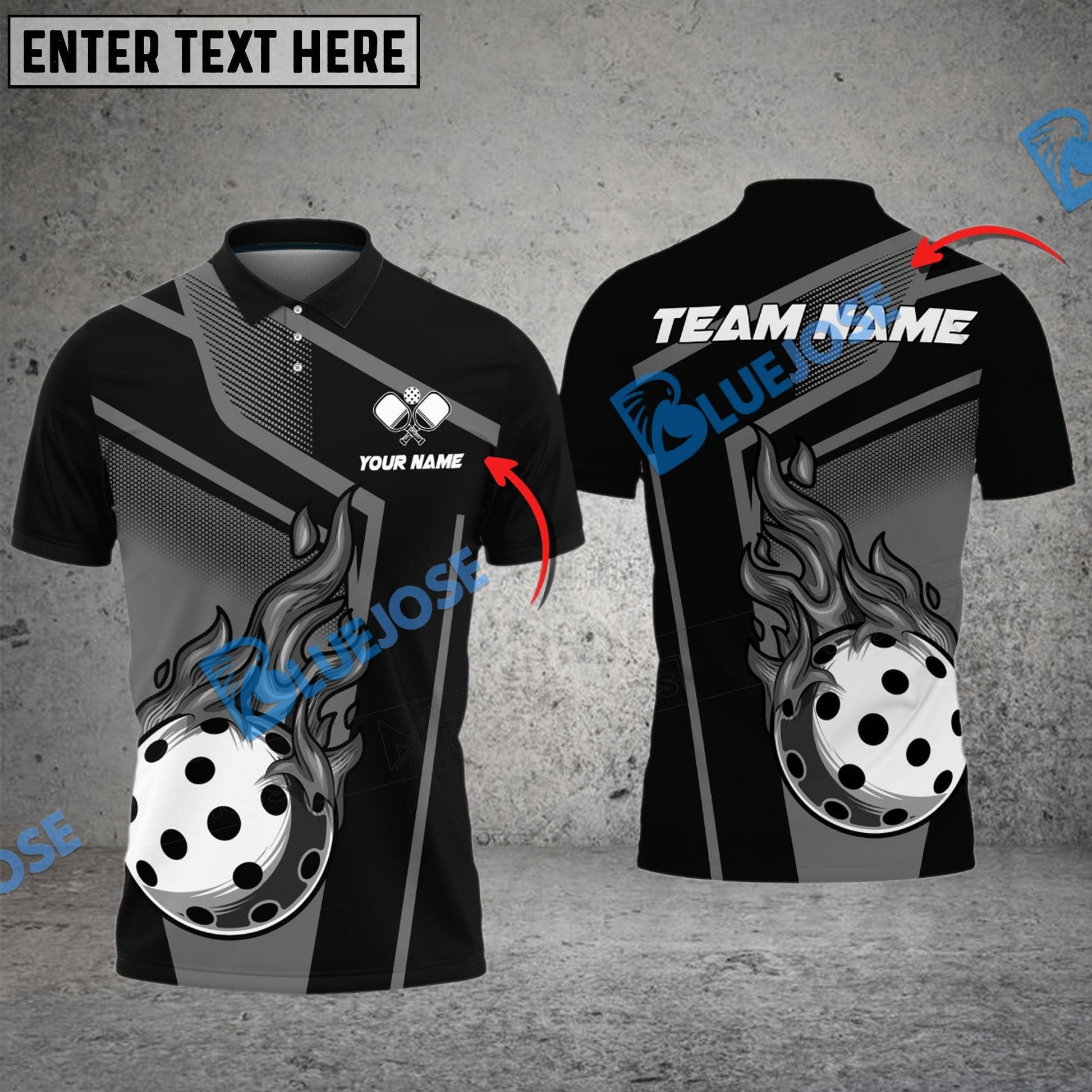 BlueJose Pickleball Fire Square Line Personalized Name, Team Name Unisex Shirt (4 Colors)
