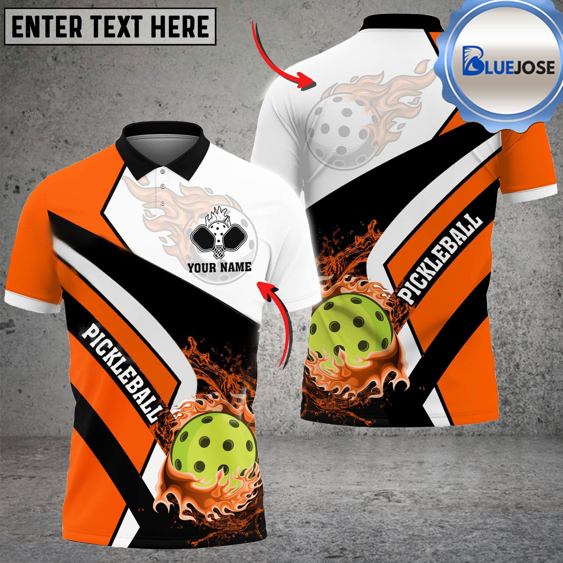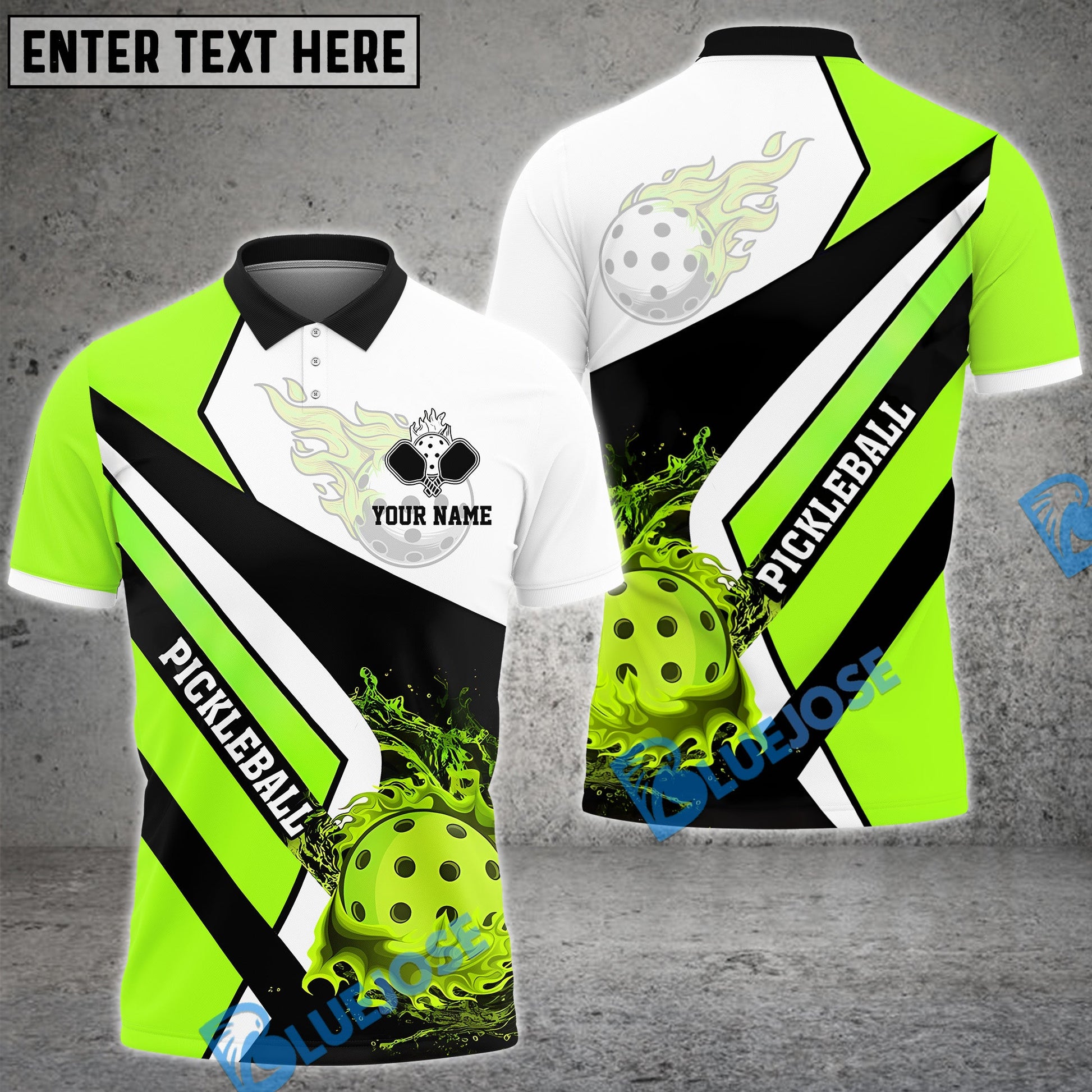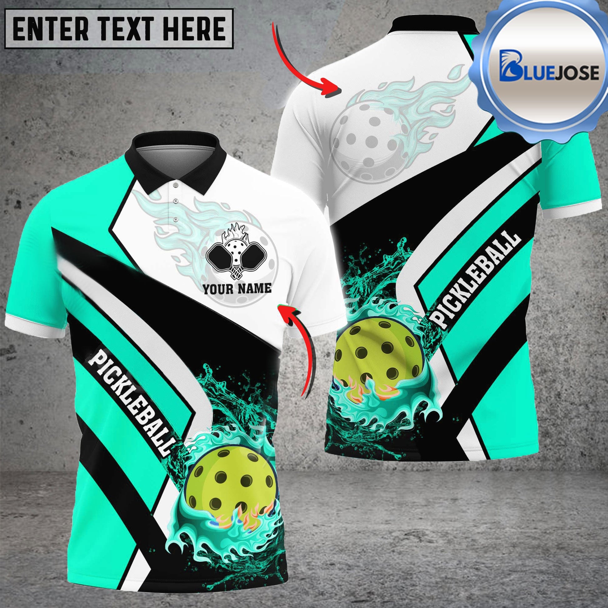 BlueJose Pickleball Fire Water Flow Personalized Name, Team Name Unisex Shirt (4 Colors)