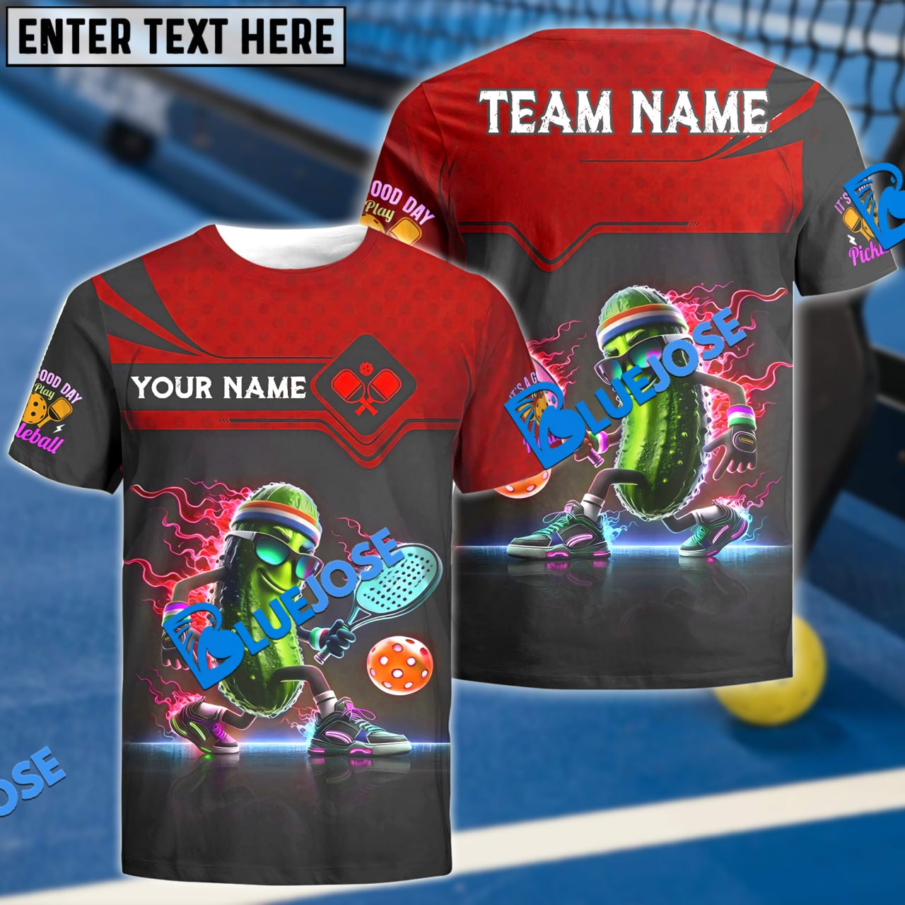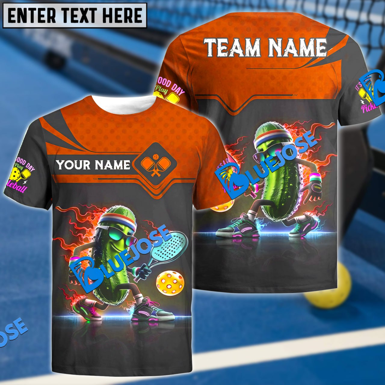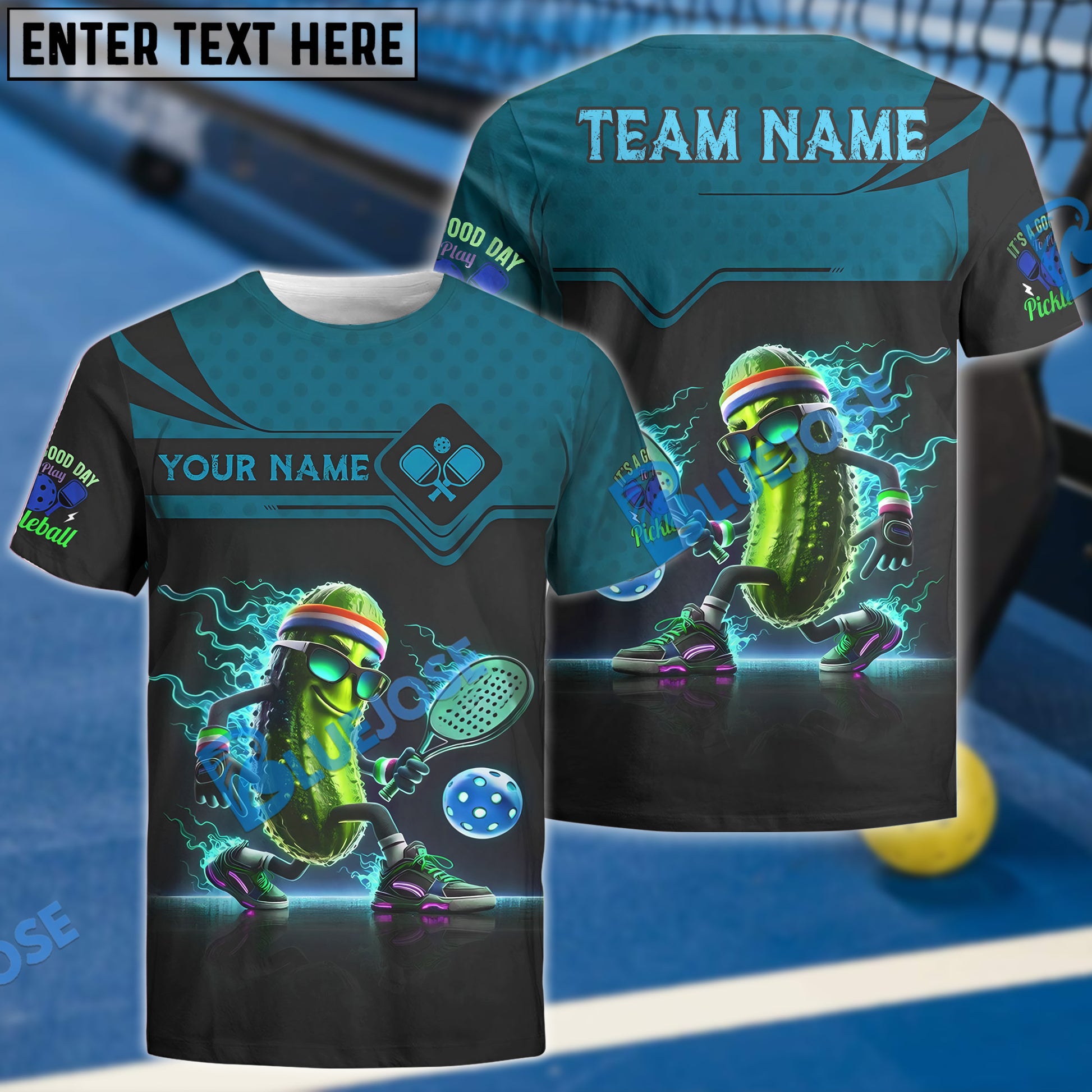 BlueJose Pickleball Funny Paddle Custom Name & Team 3D Shirt (4 Colors)