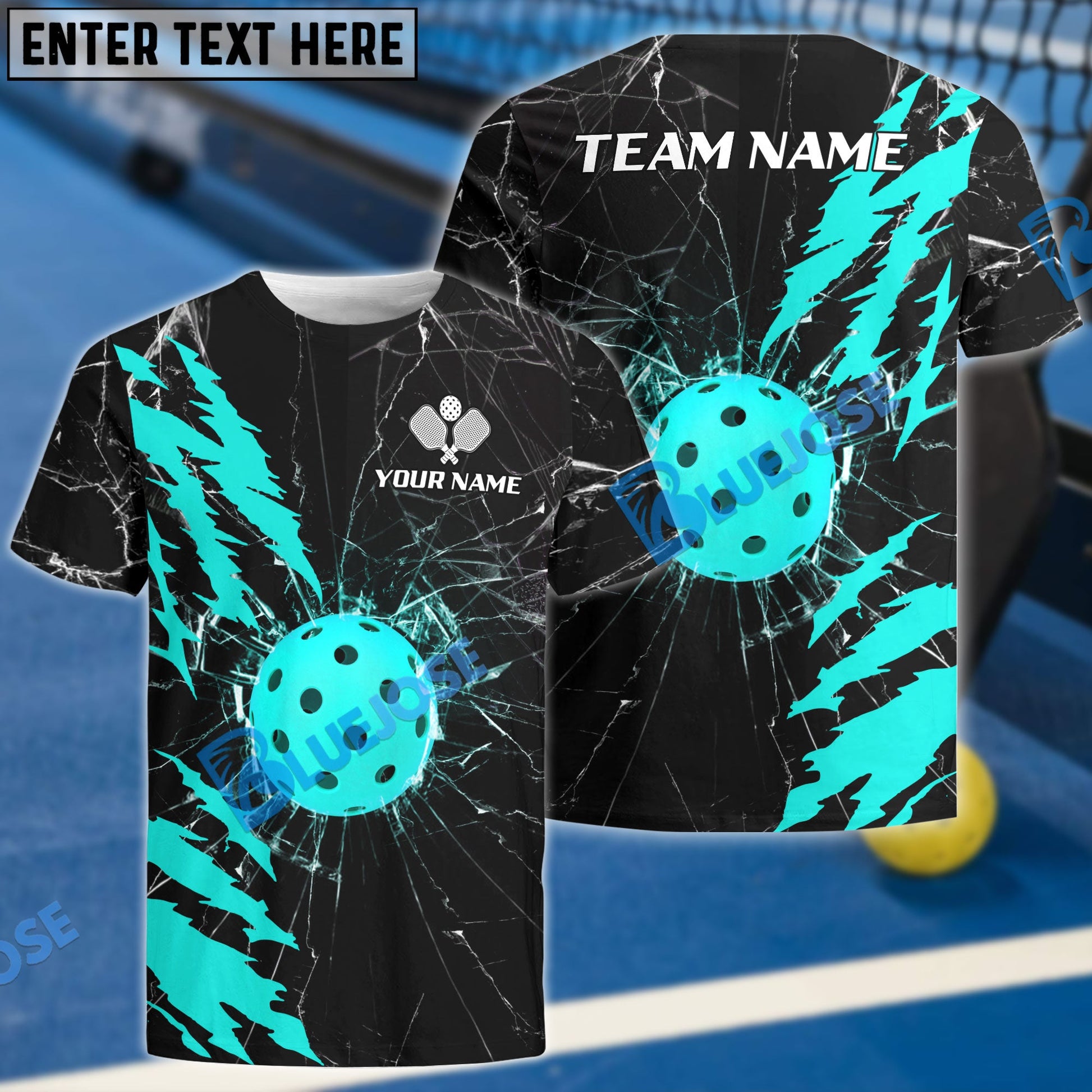 BlueJose Pickleball Glass Break Personalized Name, Team Name Unisex Shirt (4 Colors)