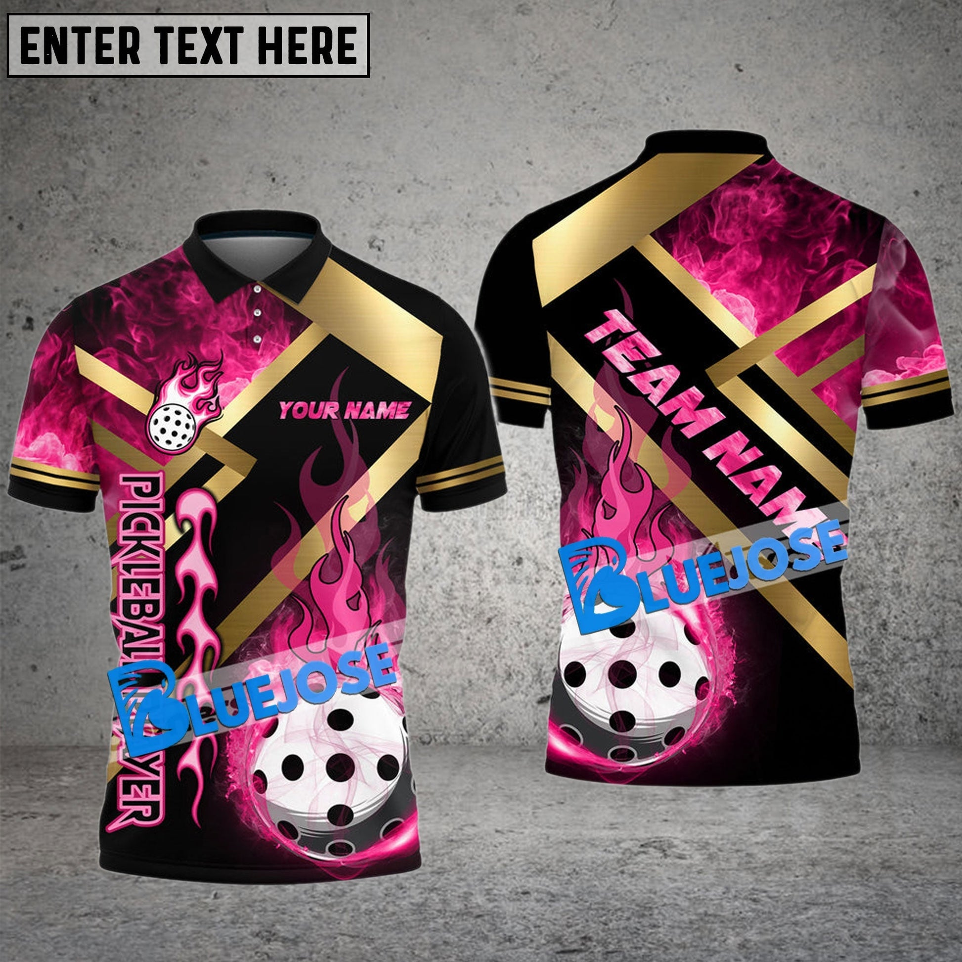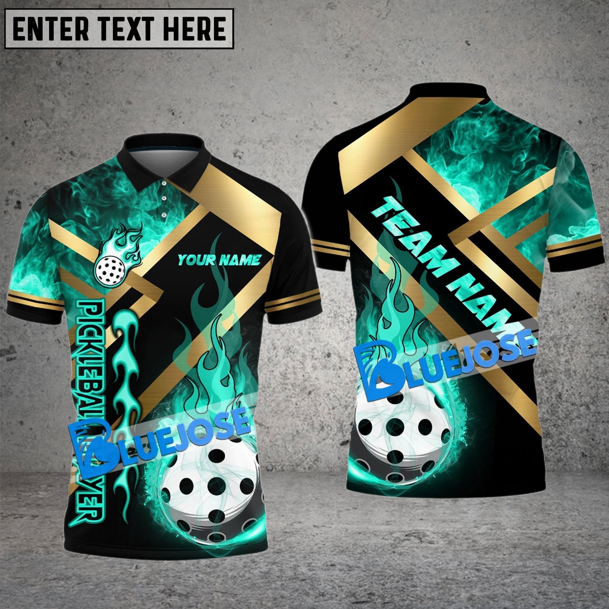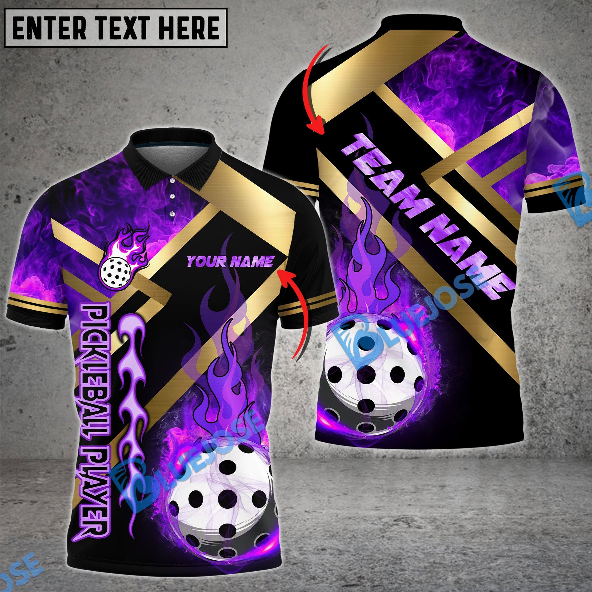 BlueJose Pickleball Metal And Fire Personalized Name, Team Name Unisex Shirt (4 Colors)