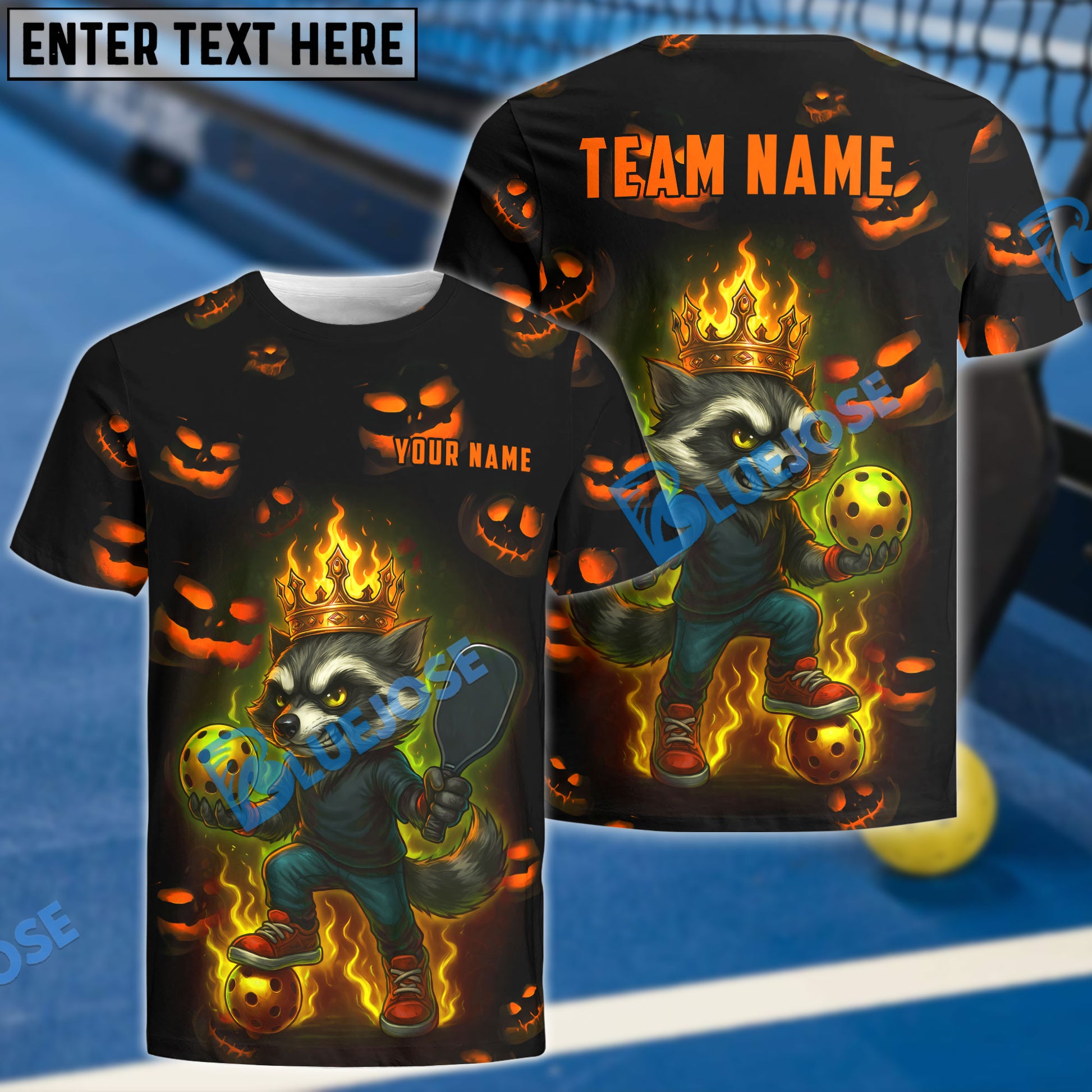 BlueJose Pickleball Neon Raccoon Flame Crown Customized Name & Team Name 3D Shirts