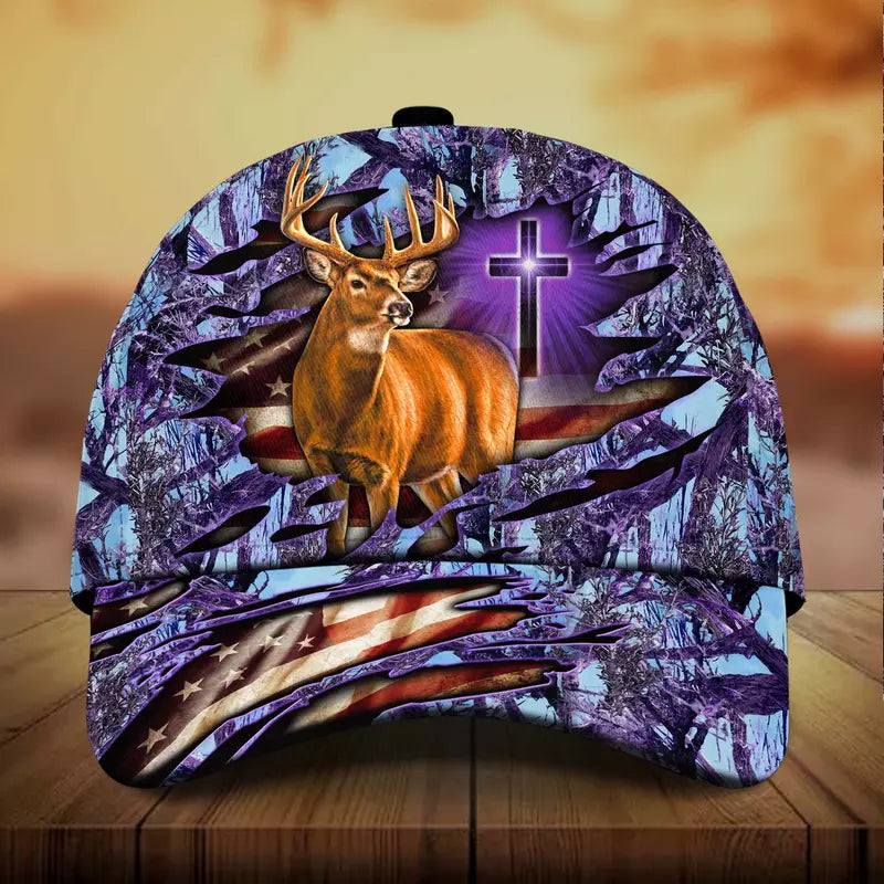 BlueJose Premium Cross And Deer Multicolor 3D Personalized Cap