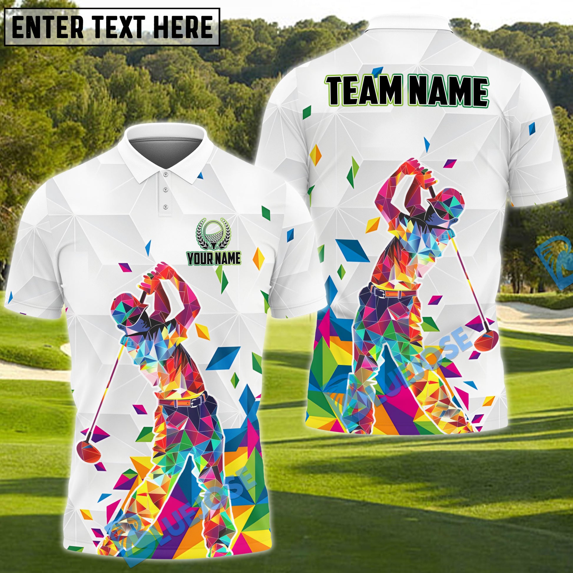 BlueJose Rainbow Swing Golf Polo Shirt, Custom Name & Team Name Golf 3D Shirts