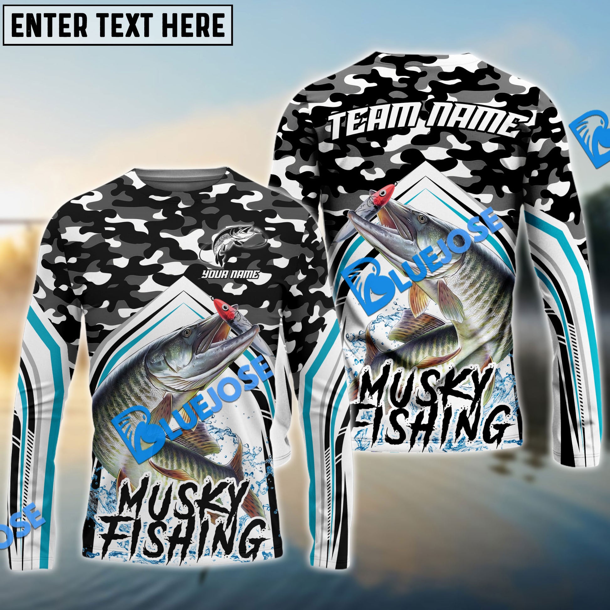 Bluejose Salmon Fishing Black Camo Sport Custom Name & Team Name 3D Shirts