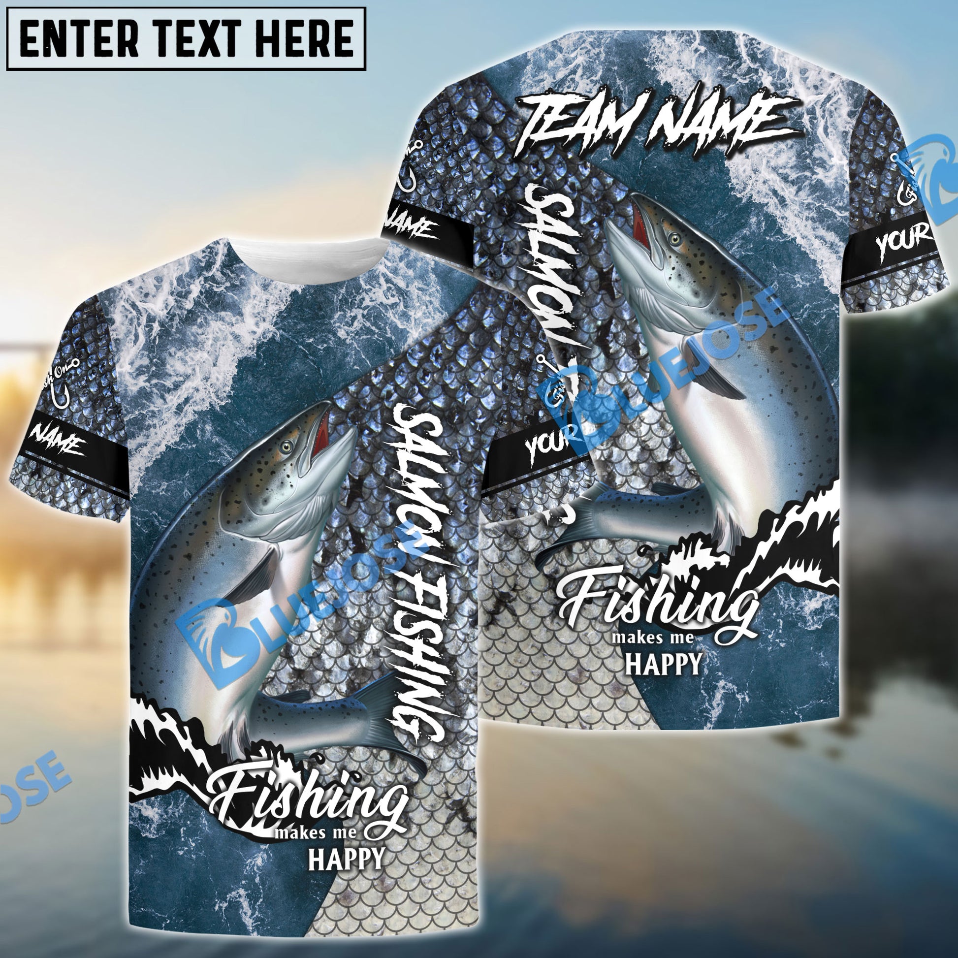 Bluejose Salmon Fishing Skin Seawave Custom Name & Team Name 3D Shirts
