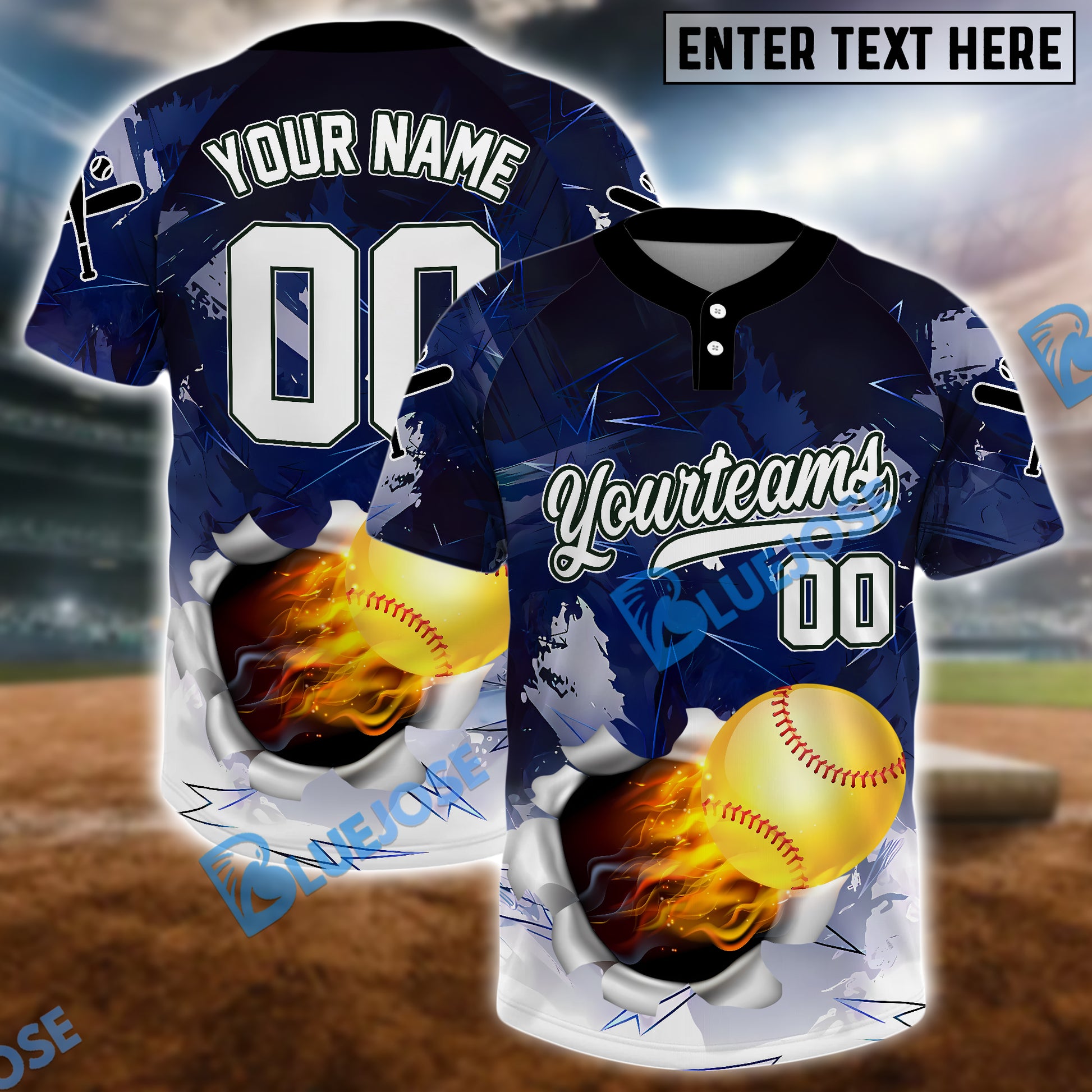 BlueJose Fireball Smash Softball Jersey, Custom Name & Team Number 3D Shirt (4 Colors)
