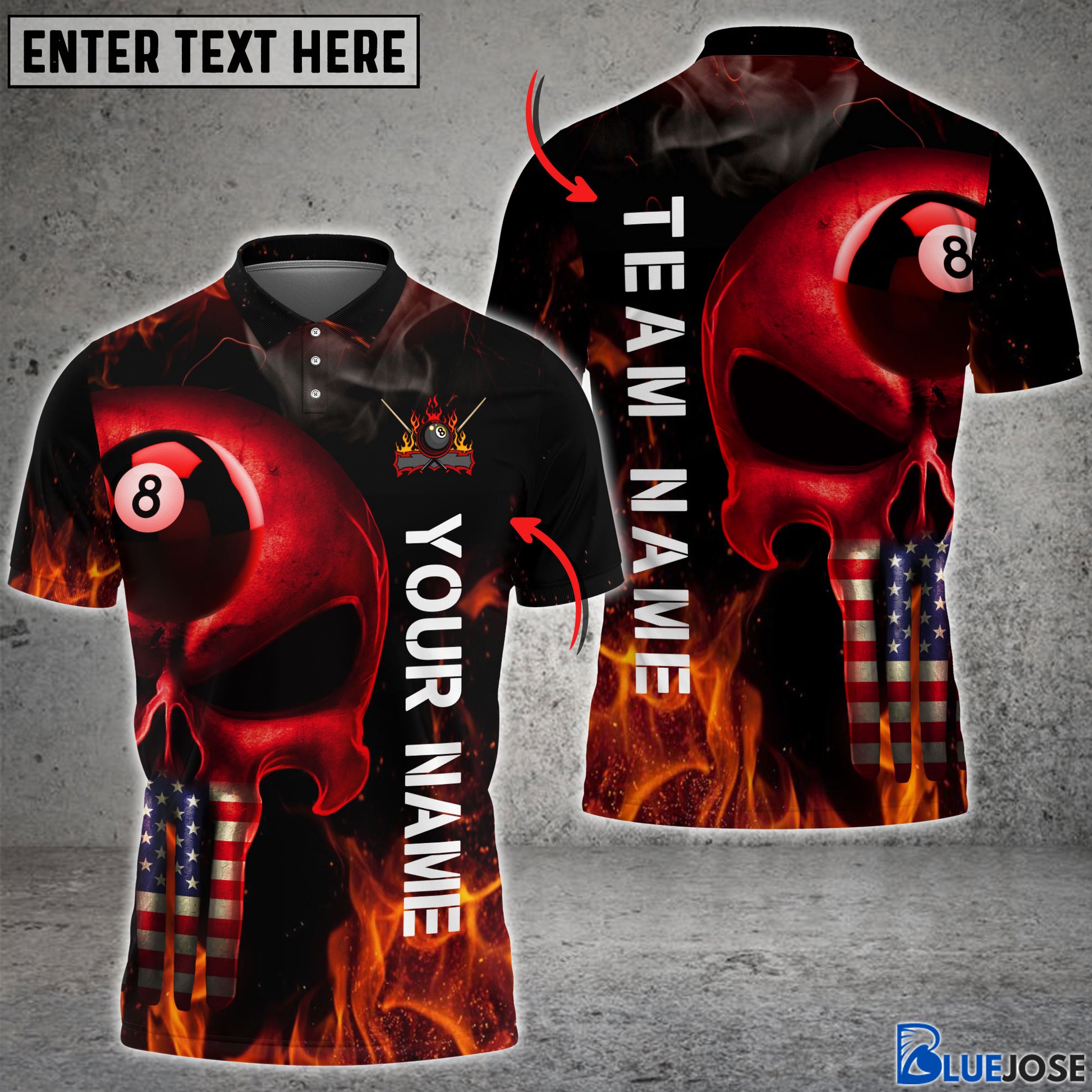 BlueJose Skull Head USA Flag Personalized Name, Team Name 3D Shirts