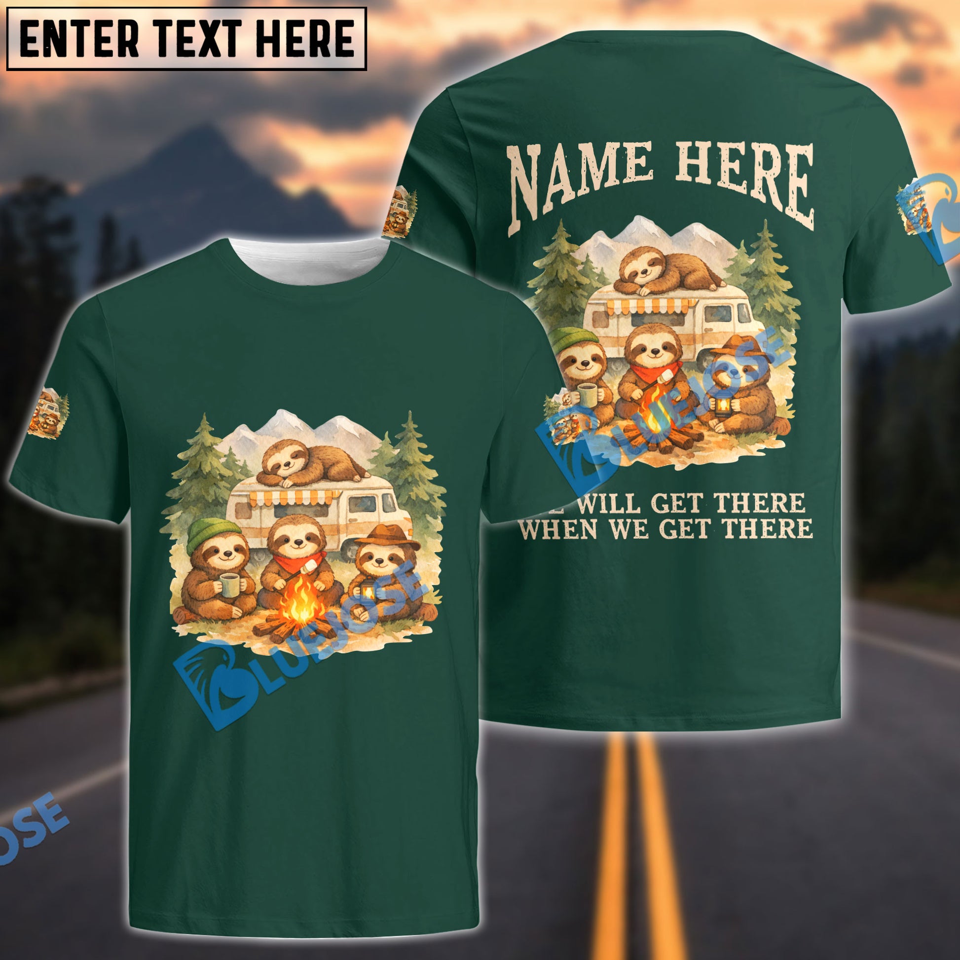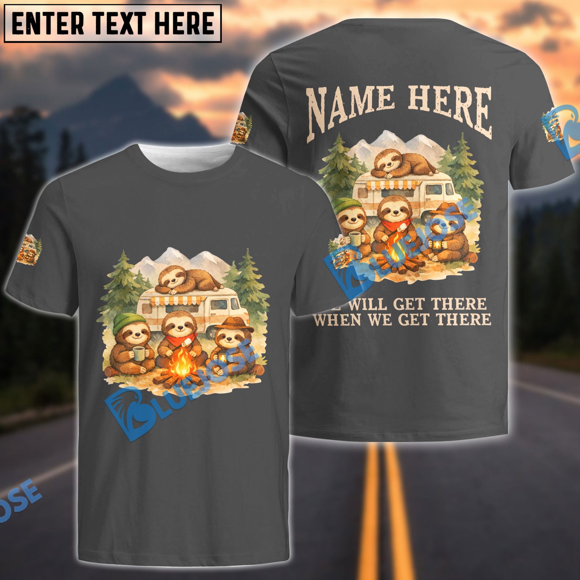 BlueJose Sloth Camping We Will Get There When We Get There Personalized Name Shirts
