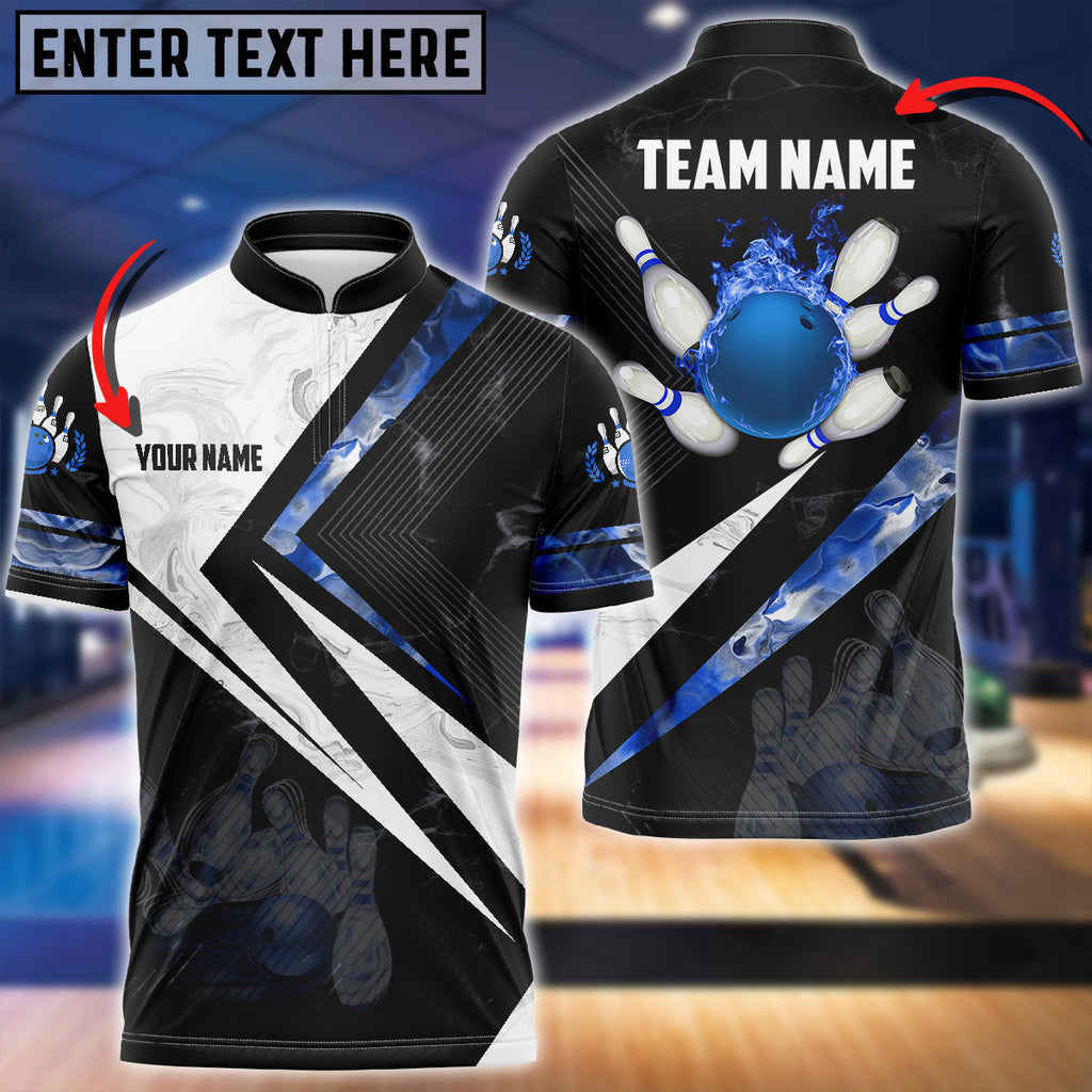 BlueJose Smoky Flame Bowling And Pins Customized Name, Team Name 3D Shirt (4 Colors)