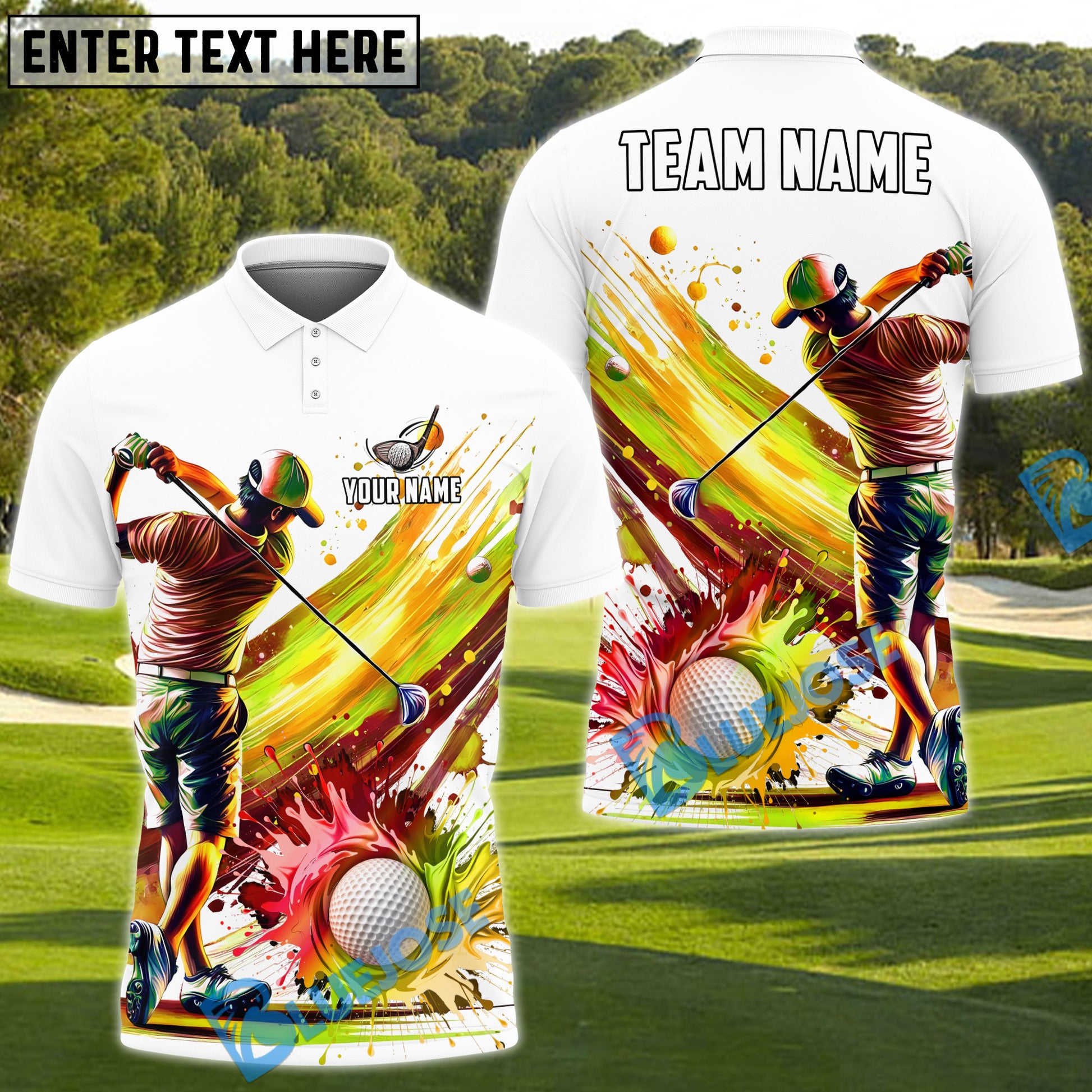 BlueJose Splash Swing Golf Polo Shirt, Customized Name & Team Name 3D Shirts (4 Colors)
