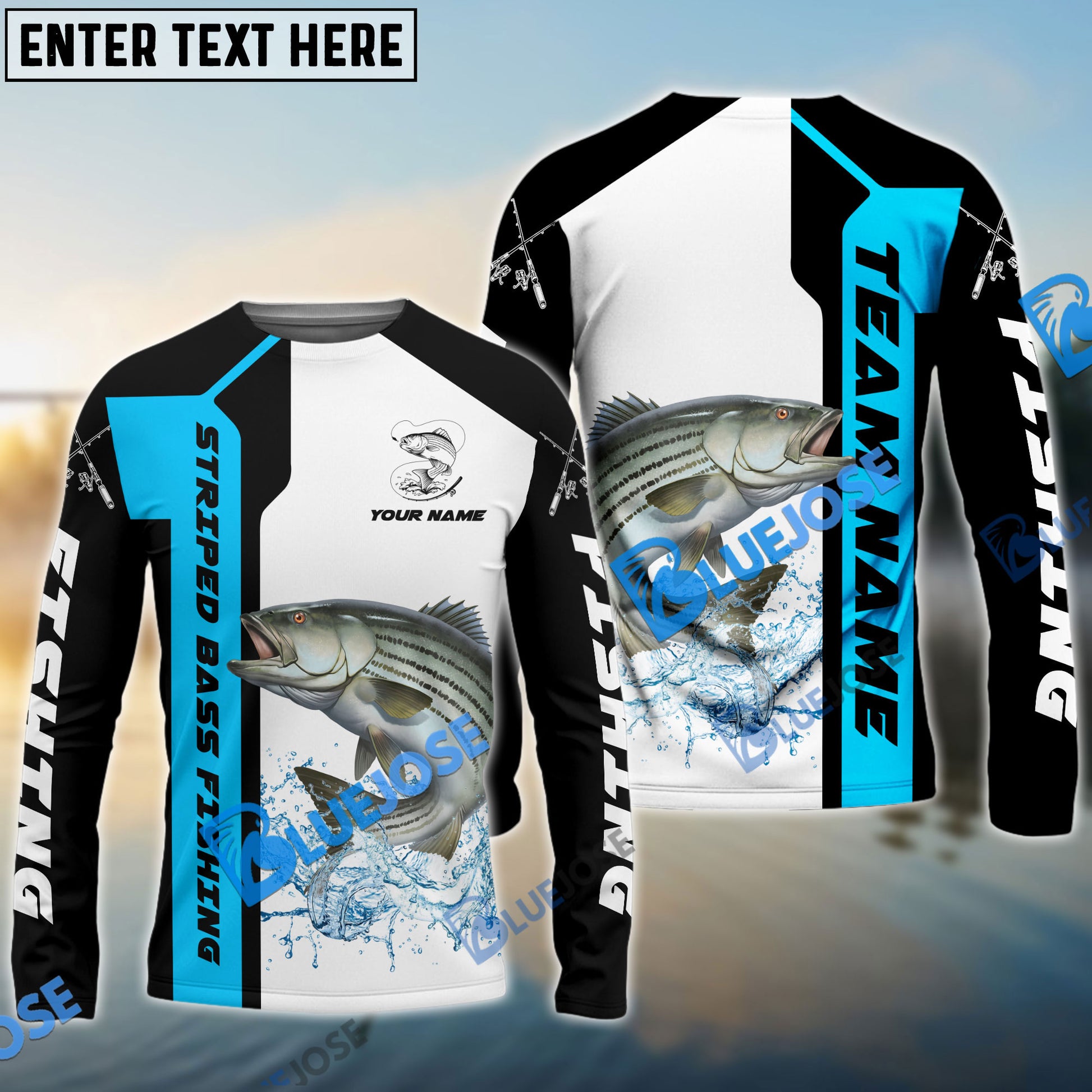 Bluejose Striped Bass Fishing Blue Line Sport Custom Name & Team Name 3D Shirts