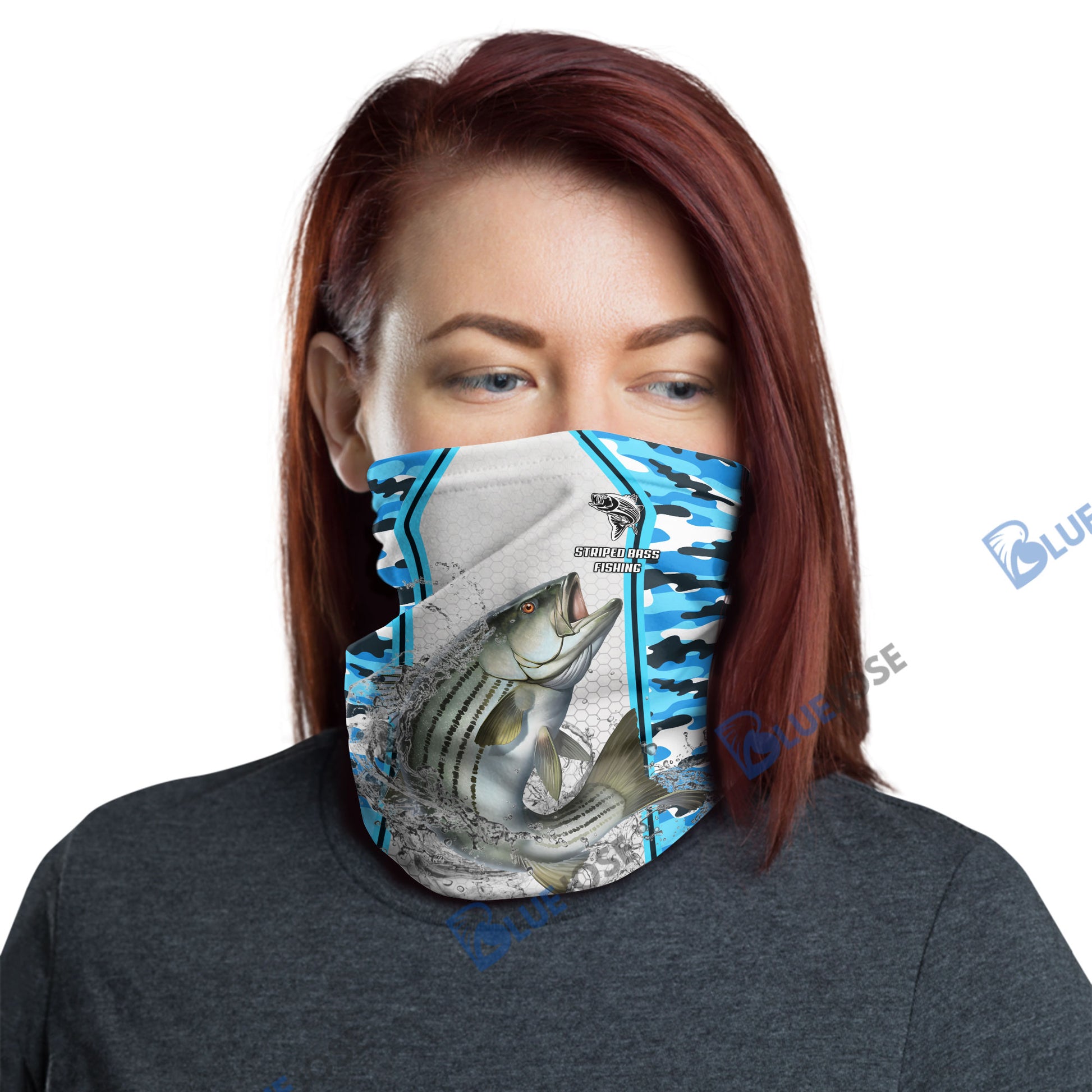 BlueJose Striped Bass Fishing Light Blue Camo Sport Neck Gaiter