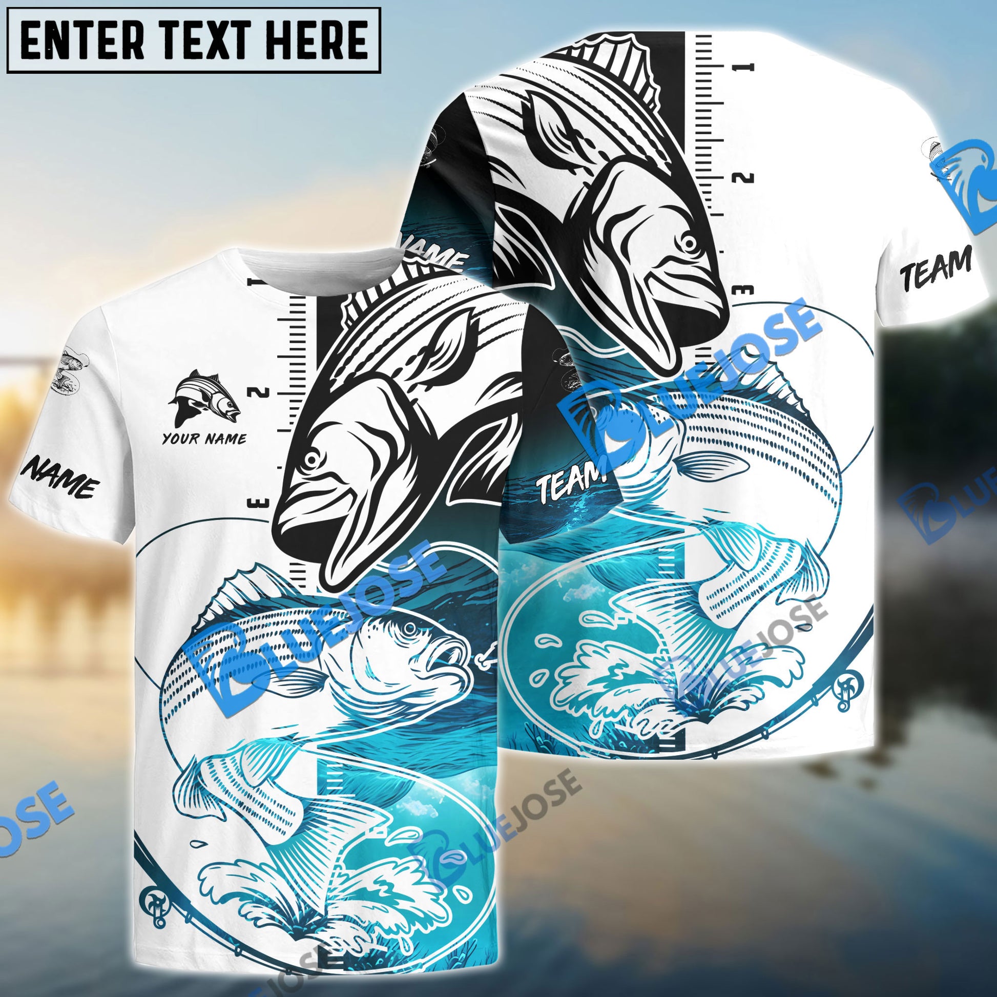 Bluejose Striped Bass Fishing White Blue Water Custom Name & Team Name 3D Shirts