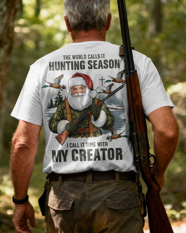 BlueJose The World Calls It Hunting Season I Call It Time With My Creator Shirt, Personalized Hunting 3D Shirt