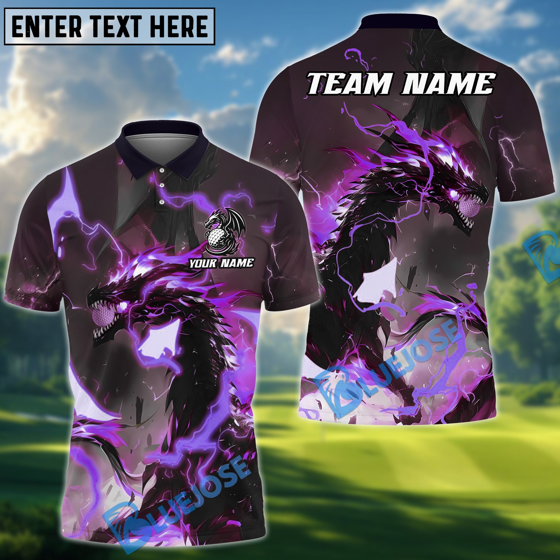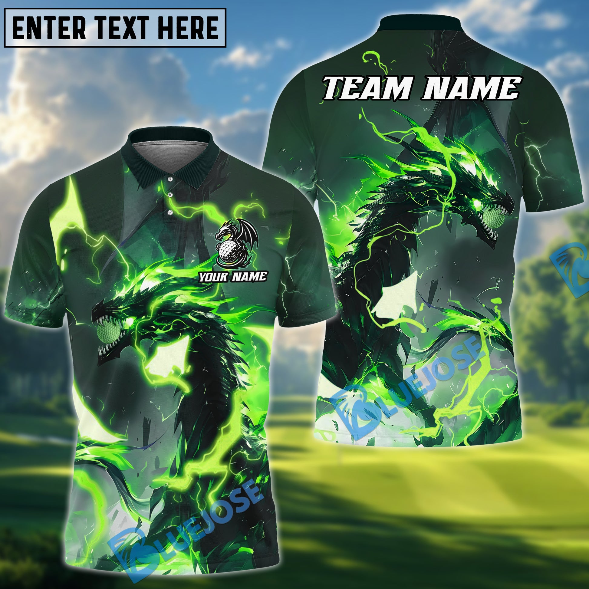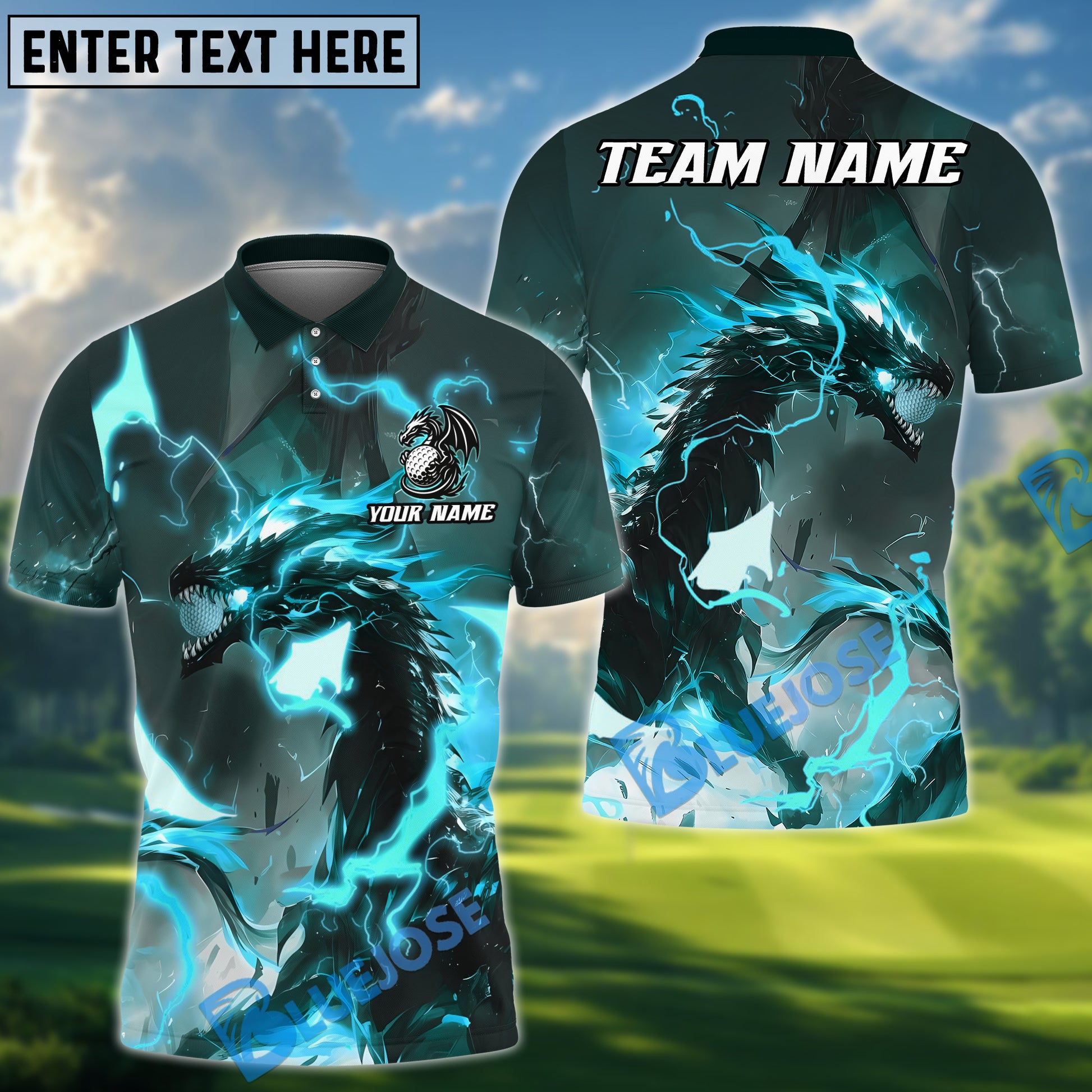BlueJose Thunder Dragon Golf Polo Shirt, Customized Name & Team Name 3D Shirts (4 Colors)