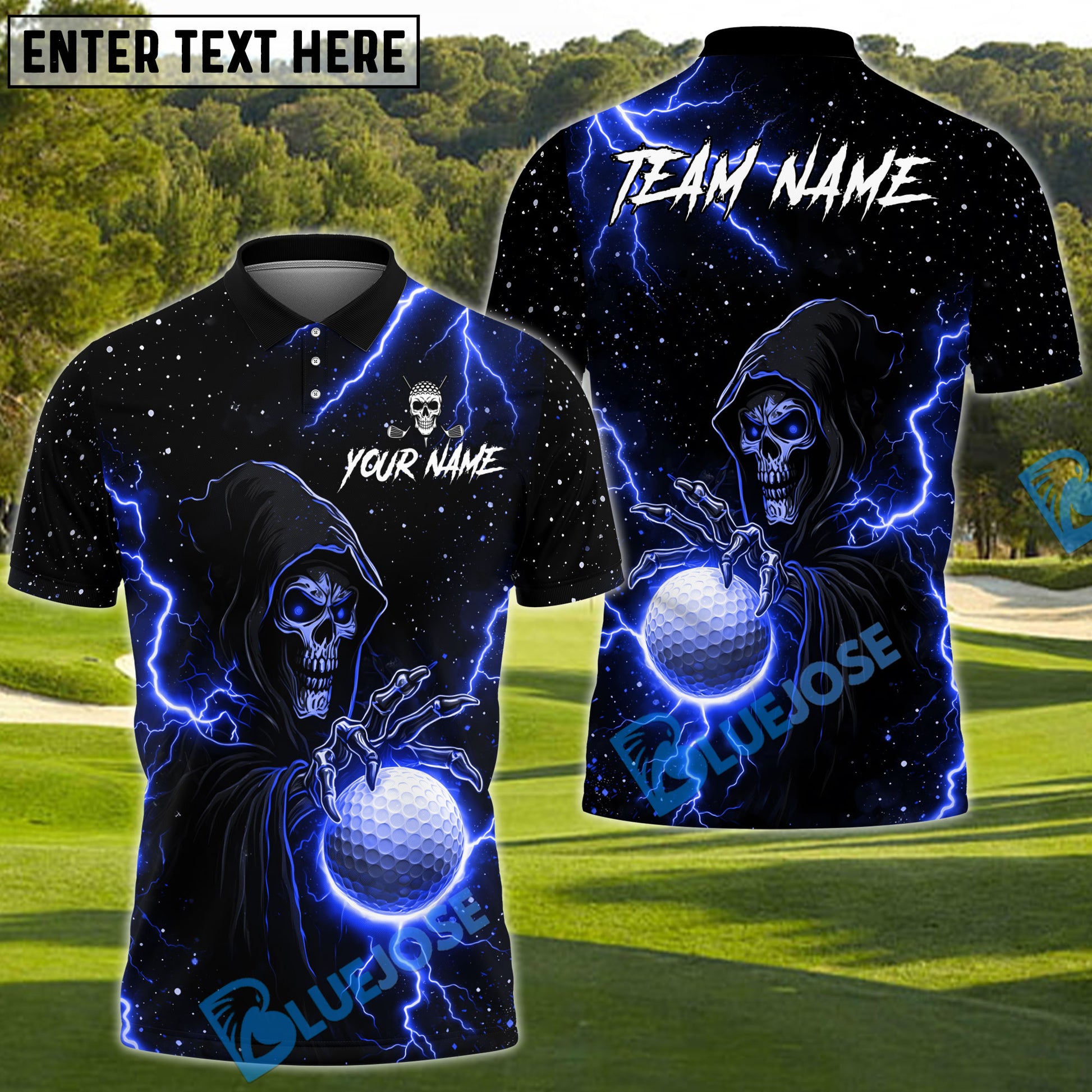BlueJose Thunder Reaper Golf Polo Shirt Customized Name, Team Name 3D Shirts (4 Colors)