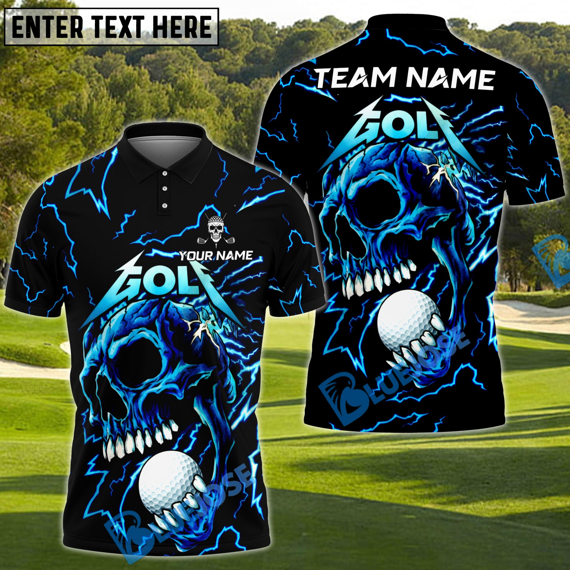 BlueJose Thunder Skull Golf Polo Shirt, Customized Name & Team Name 3D Shirts (4 Colors)