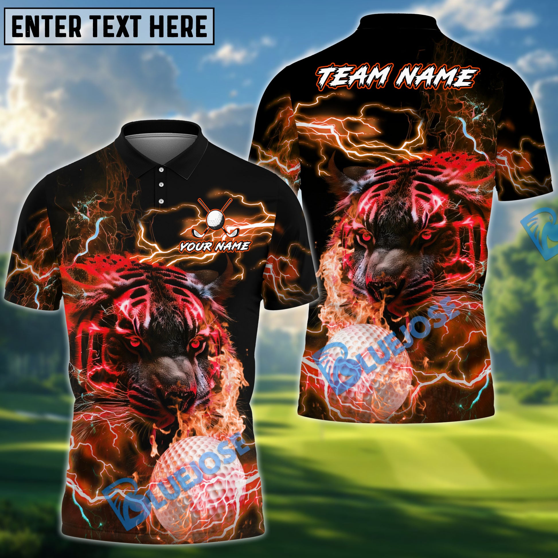 BlueJose Thunder Tiger Swing Golf Polo Shirt, Customized Name & Team Name 3D Shirts (4 Colors)