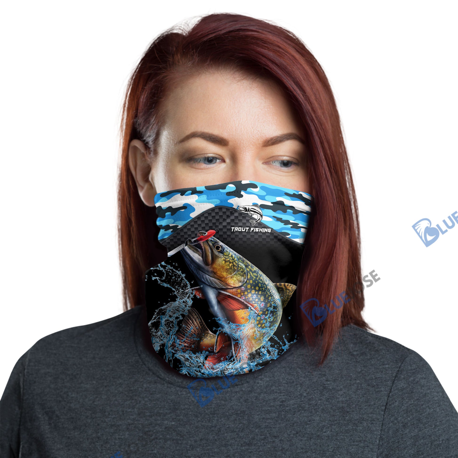 BlueJose Trout Fishing Blue Camo Sport Neck Gaiter