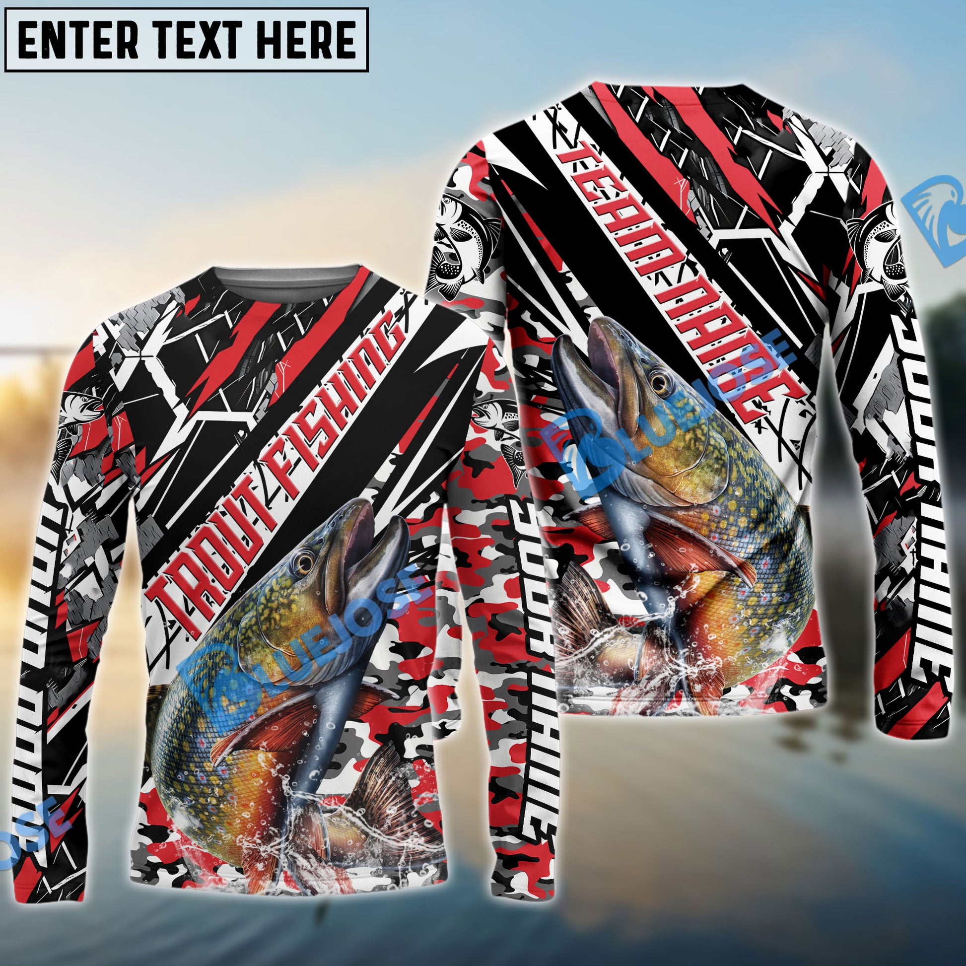 Bluejose Trout Fishing Red Grunge Camo Custom Name & Team Name 3D Shirts