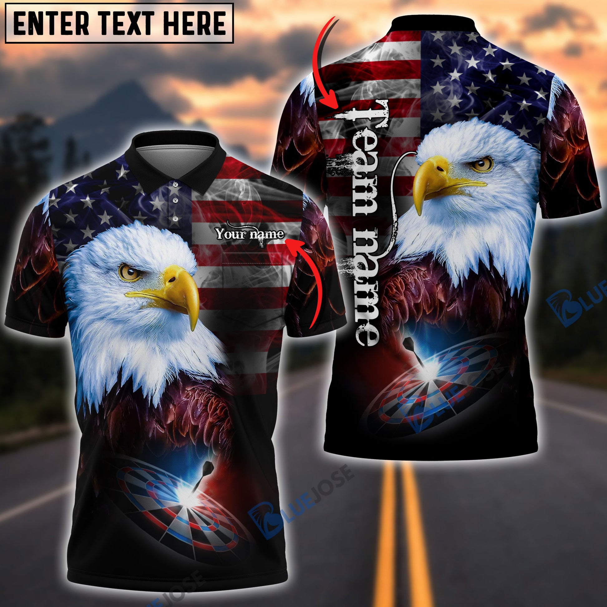 BlueJose USA Eagle Darts Personalized Name, Team Name 3D Shirt