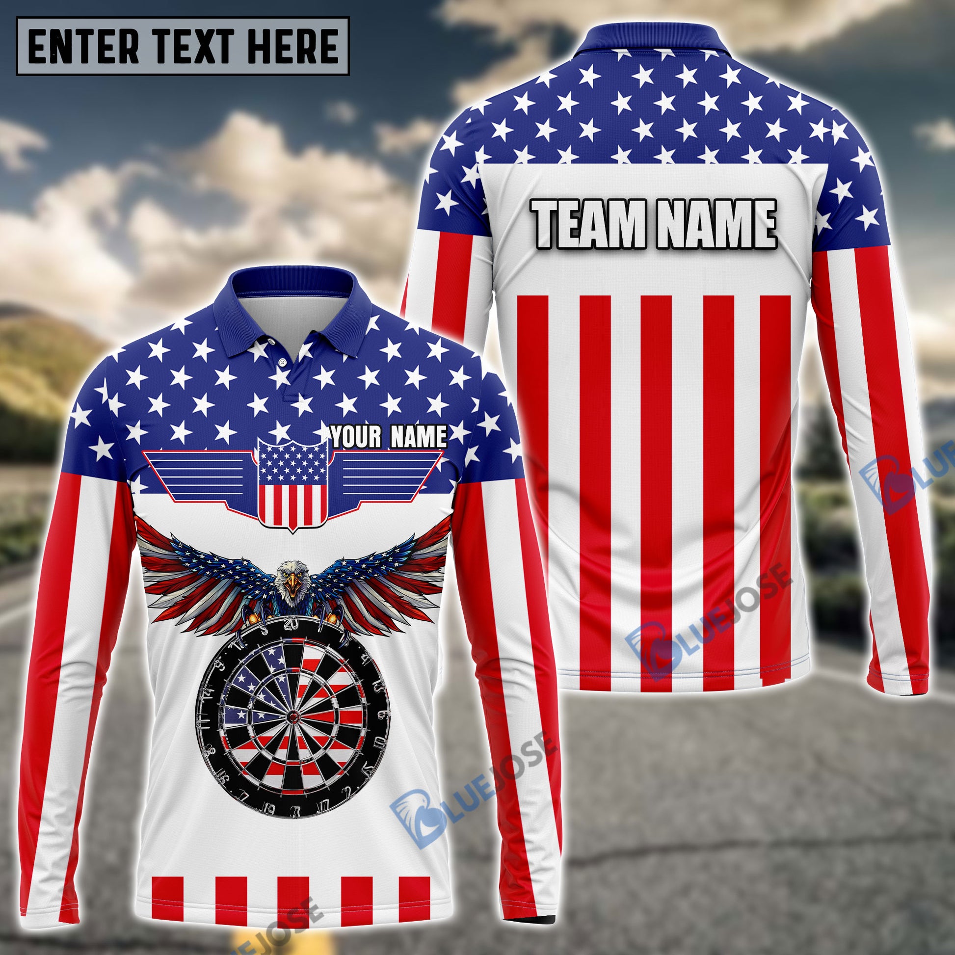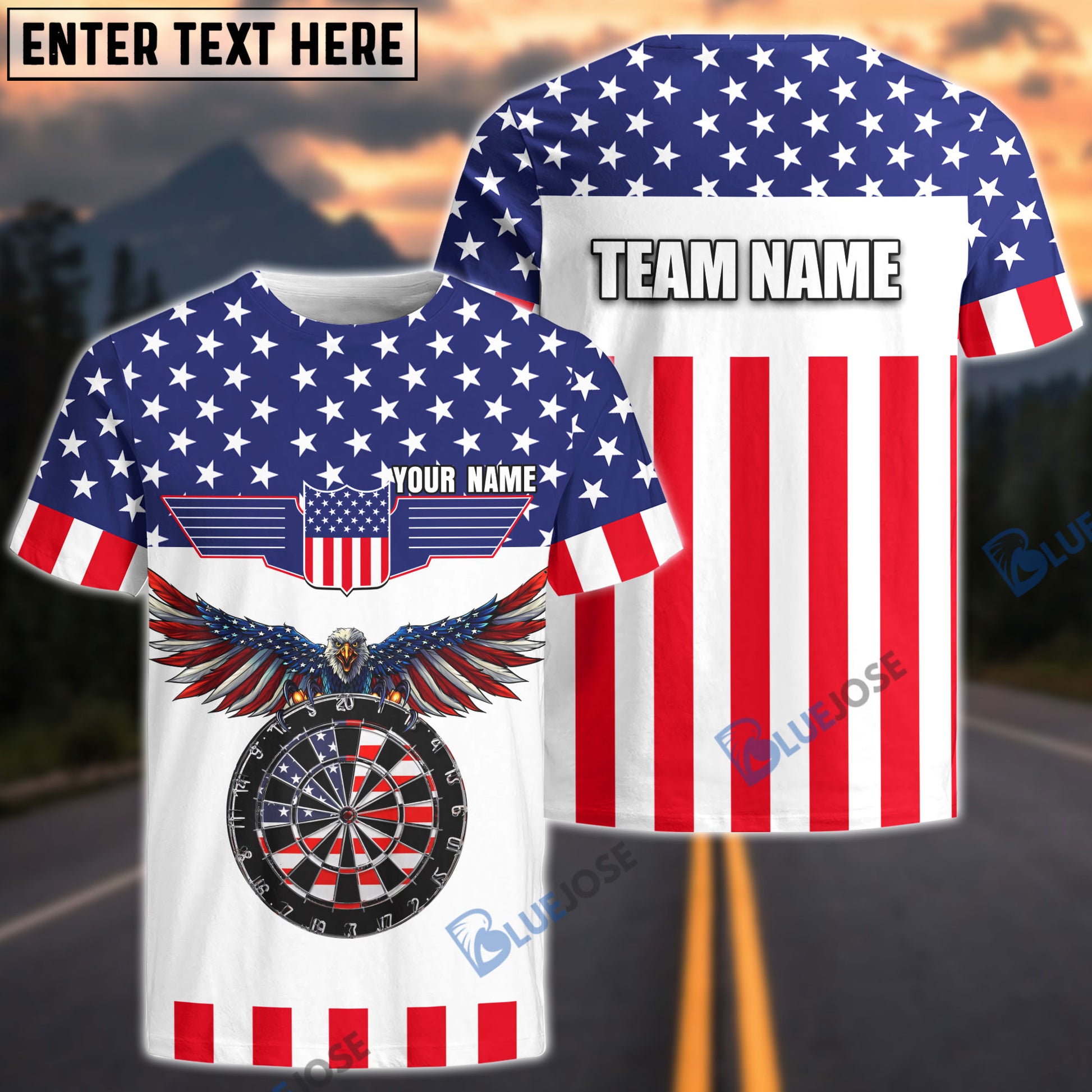 BlueJose USA Flag Dartboard Personalized Name, Team Name 3D Shirt
