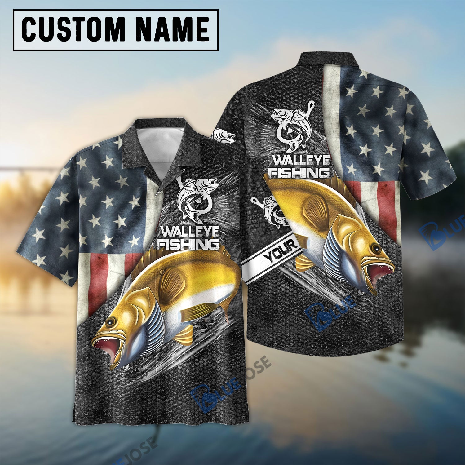 Bluejose Walleye Fishing American Flag Patriotic Custome Name 3D Shirt