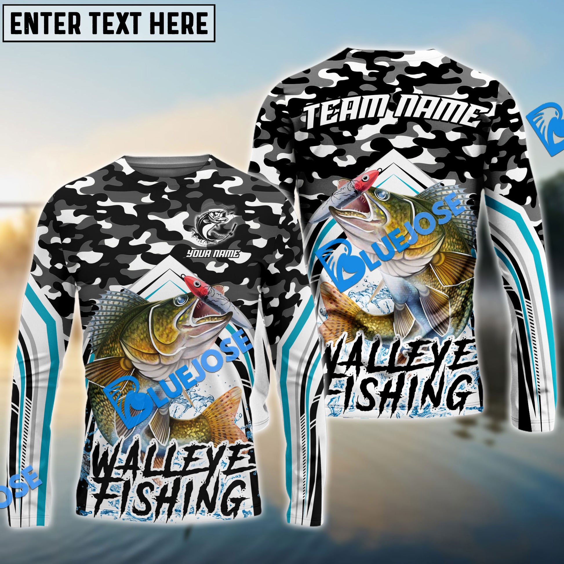 Bluejose Walleye Fishing Black Camo Sport Custom Name & Team Name 3D Shirts