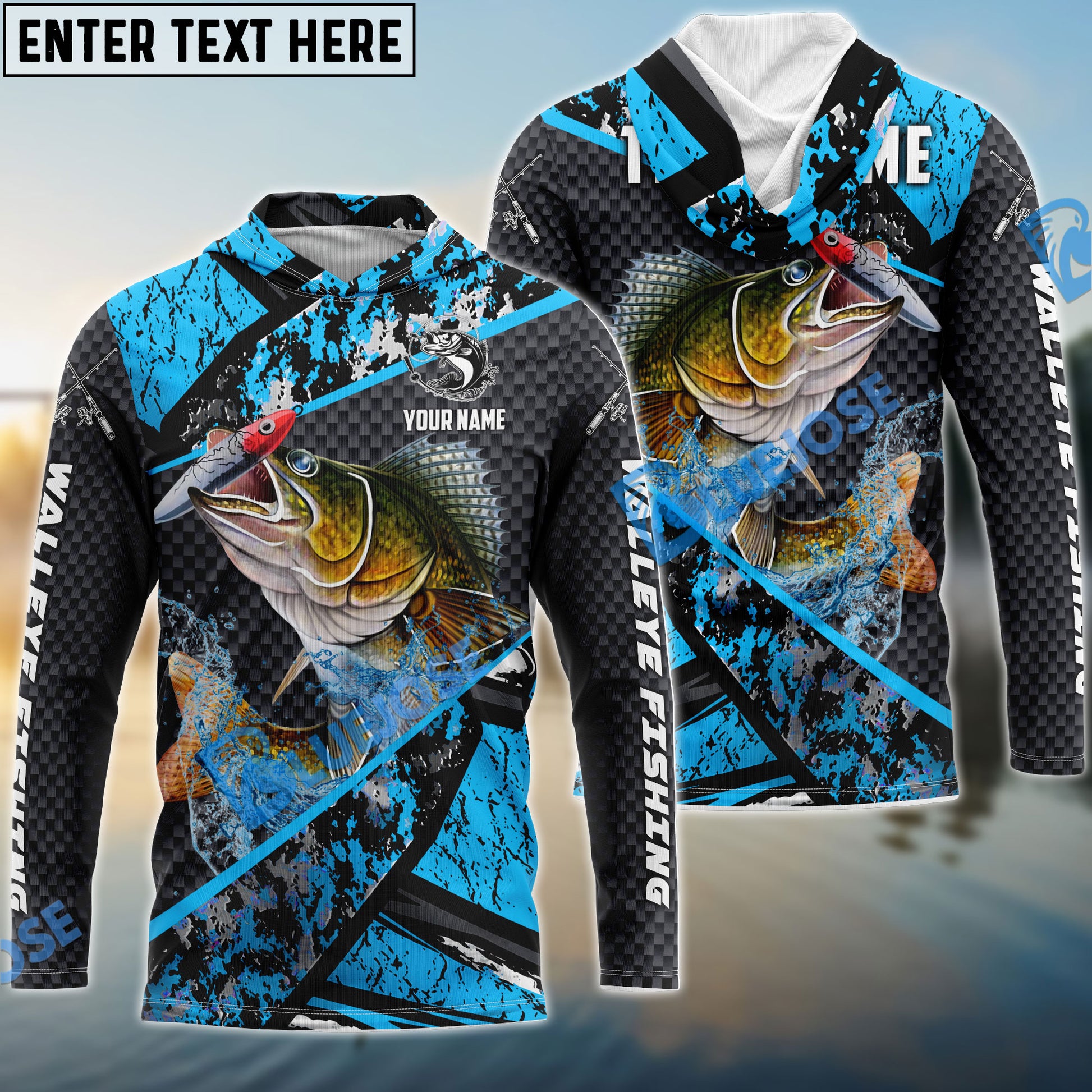 Bluejose Walleye Fishing Blue Camo 2 Sport Custom Name & Team Name 3D Shirts