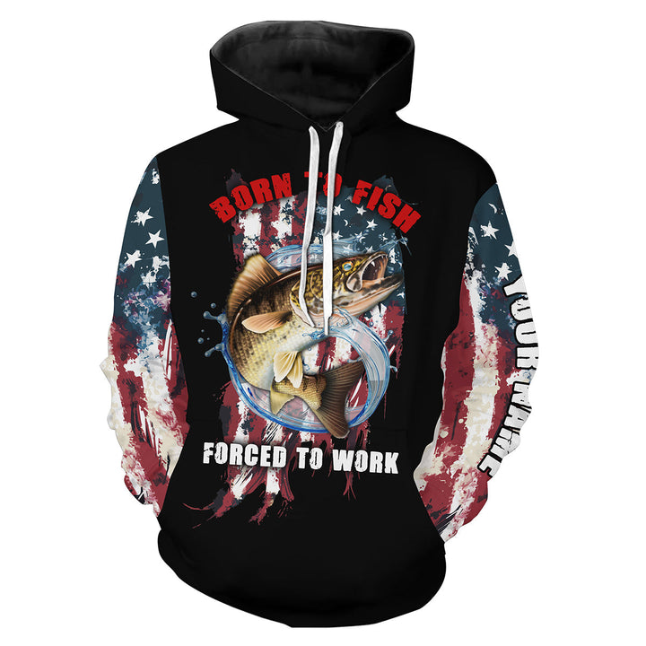BlueJose Walleye Fishing Born To Fish Forced To Work American Flag Customized Name 3D Hoodie