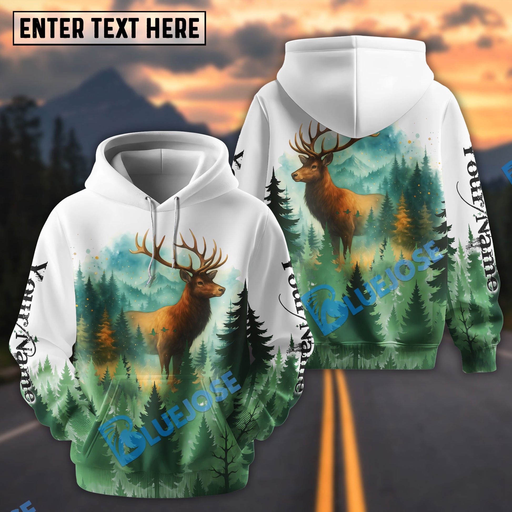 BlueJose White Deer Hunting Watercolor Art Personalized Name Hoodie For Hunting Lover