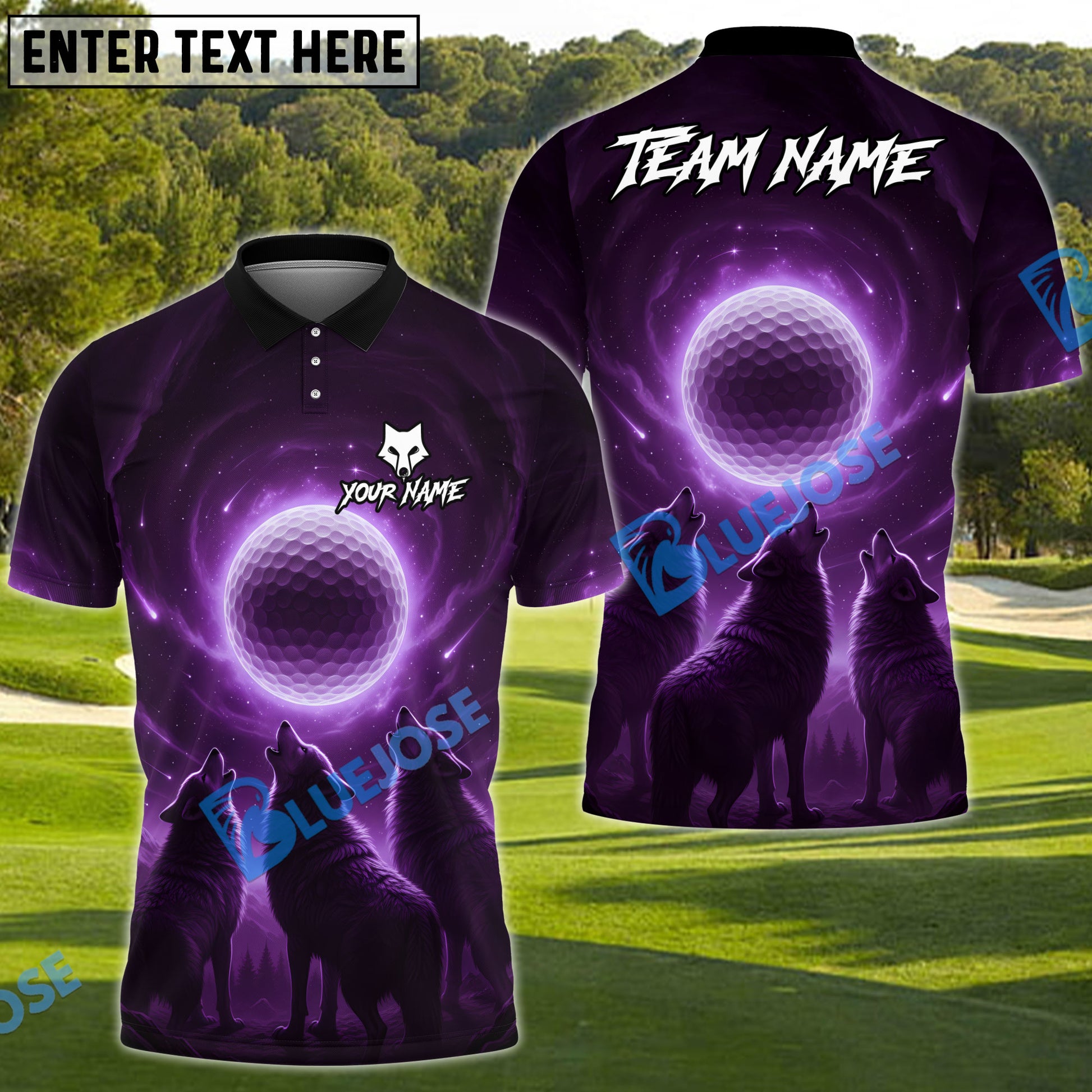 BlueJose Wolf Moon Swing Golf Polo Shirt, Customized Name & Team Name 3D Shirts (4 Colors)