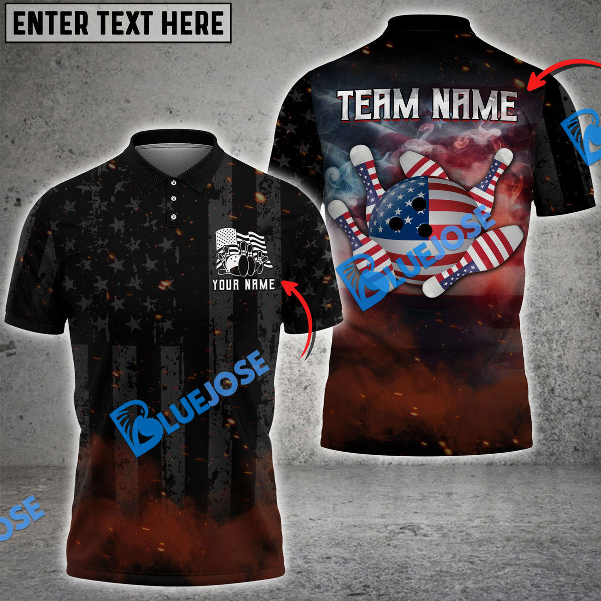 BlueJoses Bowling Amrican Flag Retro Smoke Customized Name, Team Name 3D Shirt
