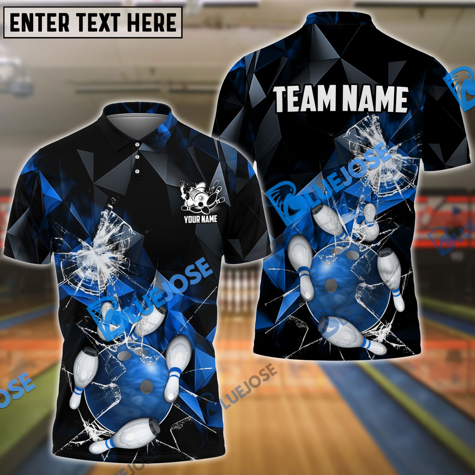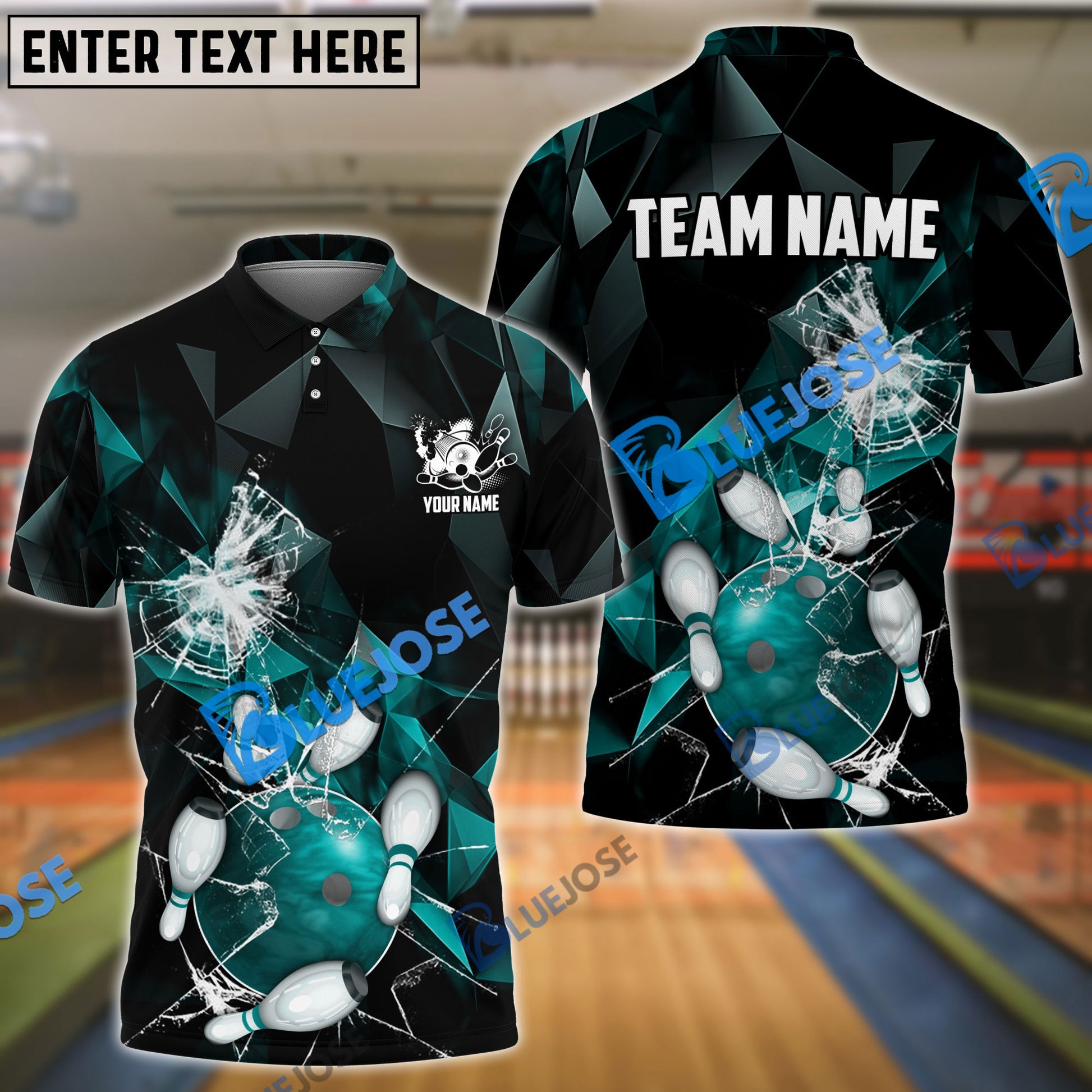 BlueJoses Bowling And Pins Broken Glass Customized Name 3D Shirt ( 6 Colors)