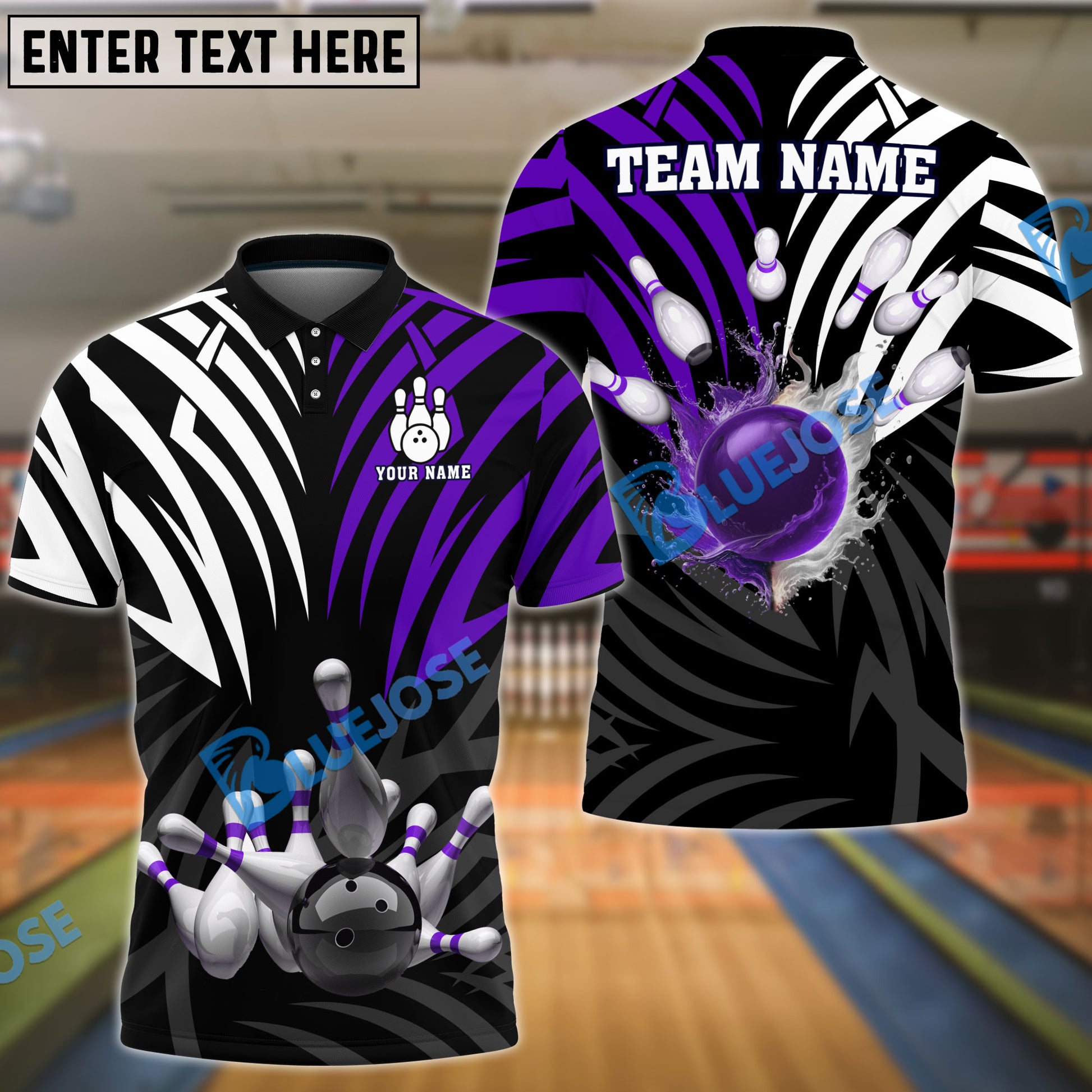 BlueJoses Bowling And Pins Color Crown Pattern Customized Name 3D Shirt (4 Colors)