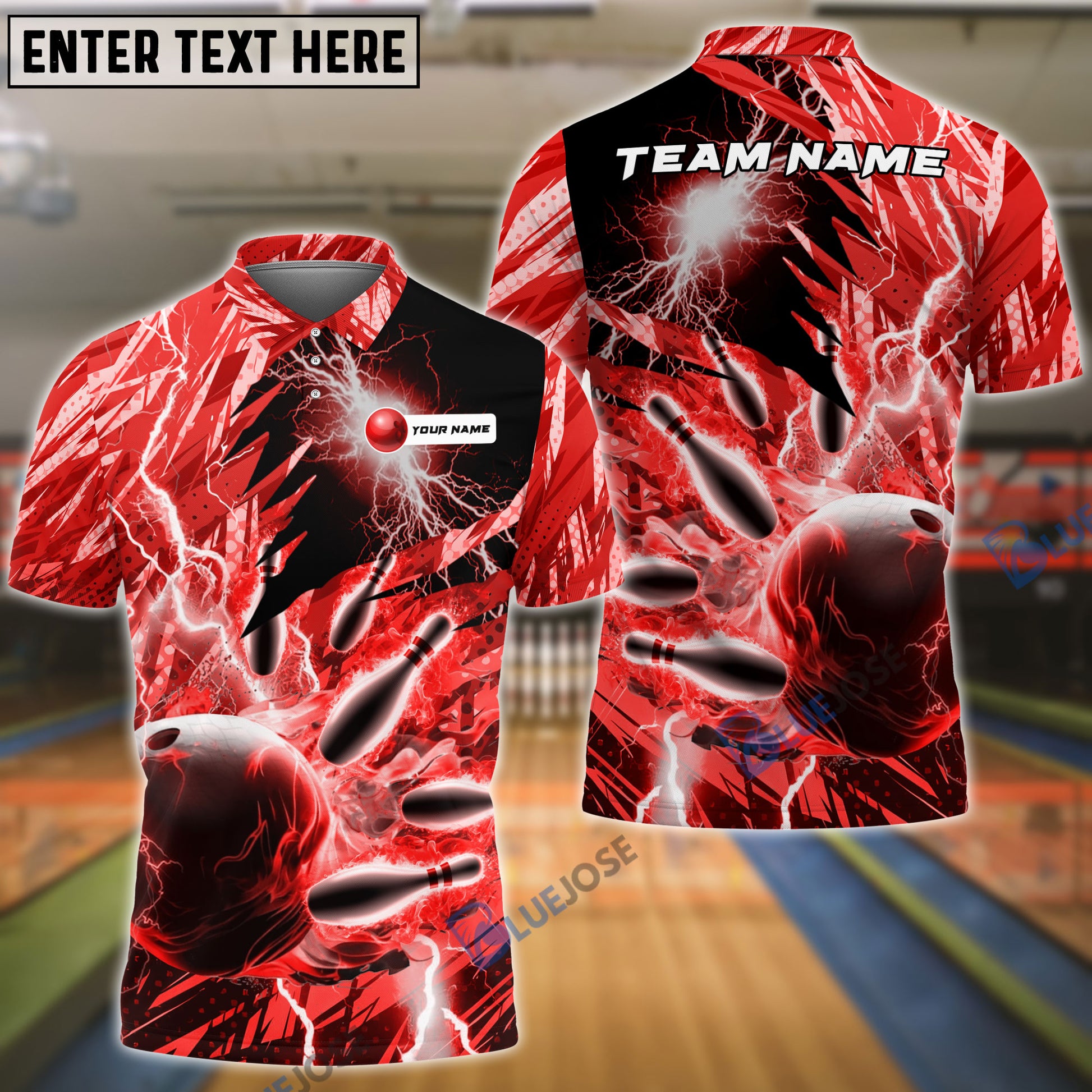 BlueJoses Bowling and Pins Color Lightning Personalized Name, Team Name 3D Shirt (4 Colors)