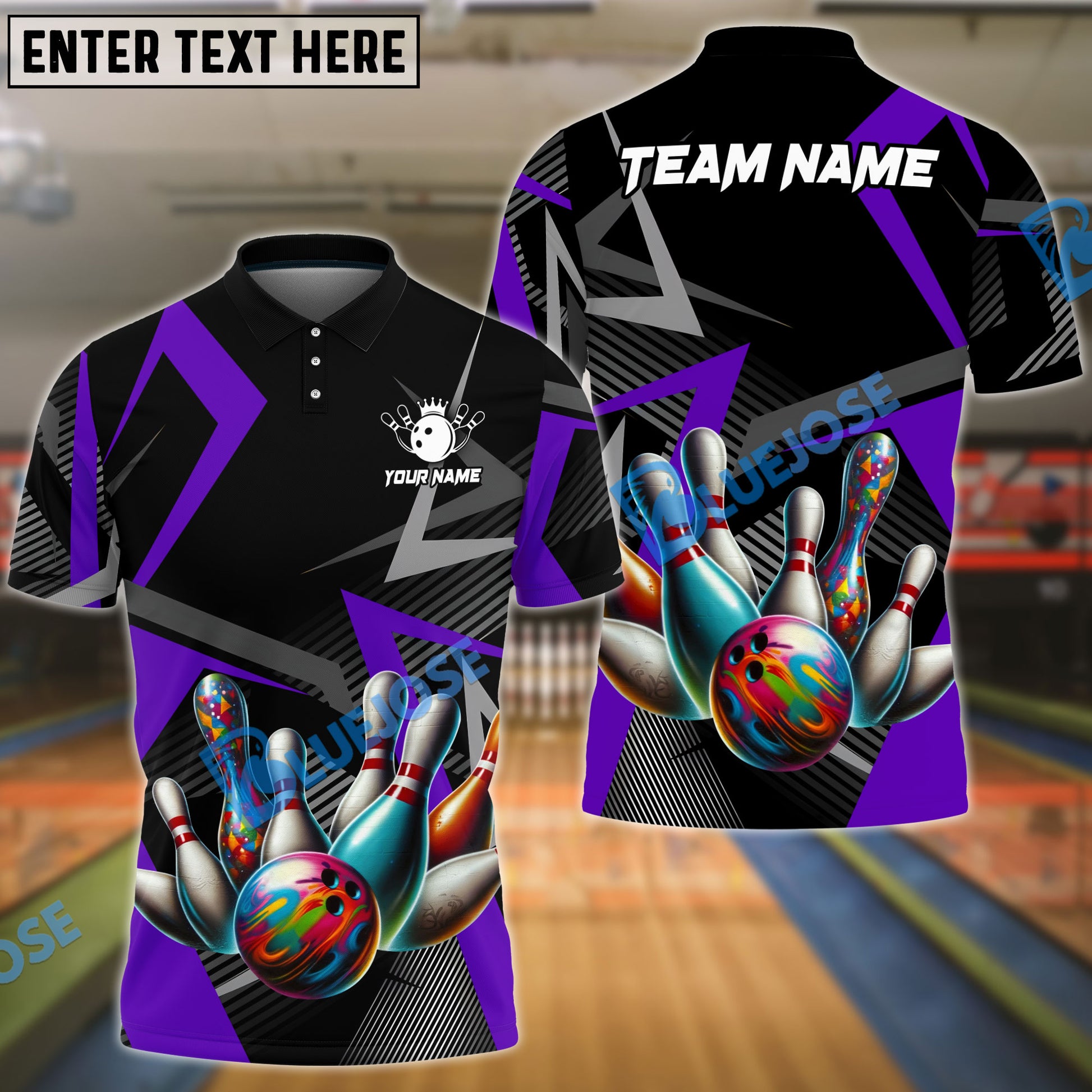BlueJoses Bowling And Pins Cube Pattern Customized Name 3D Shirt (4 Colors)