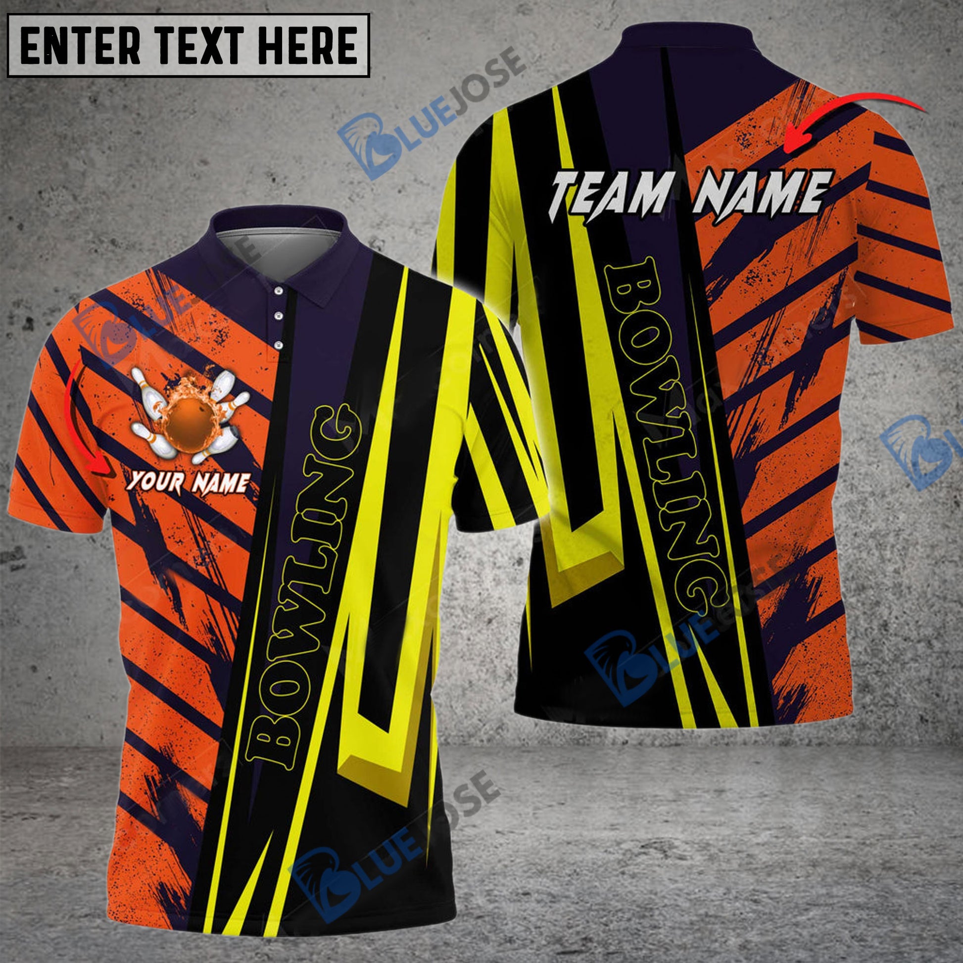 BlueJoses Bowling And Pins Diagonal Cut Customized Name 3D Shirt ( 6 Colors)