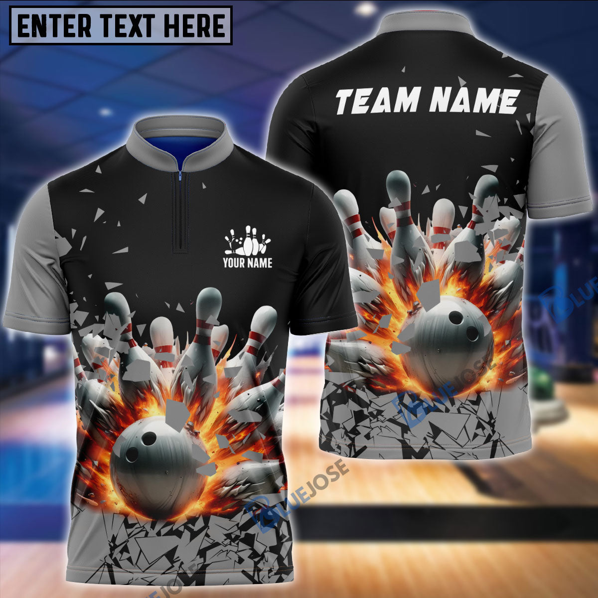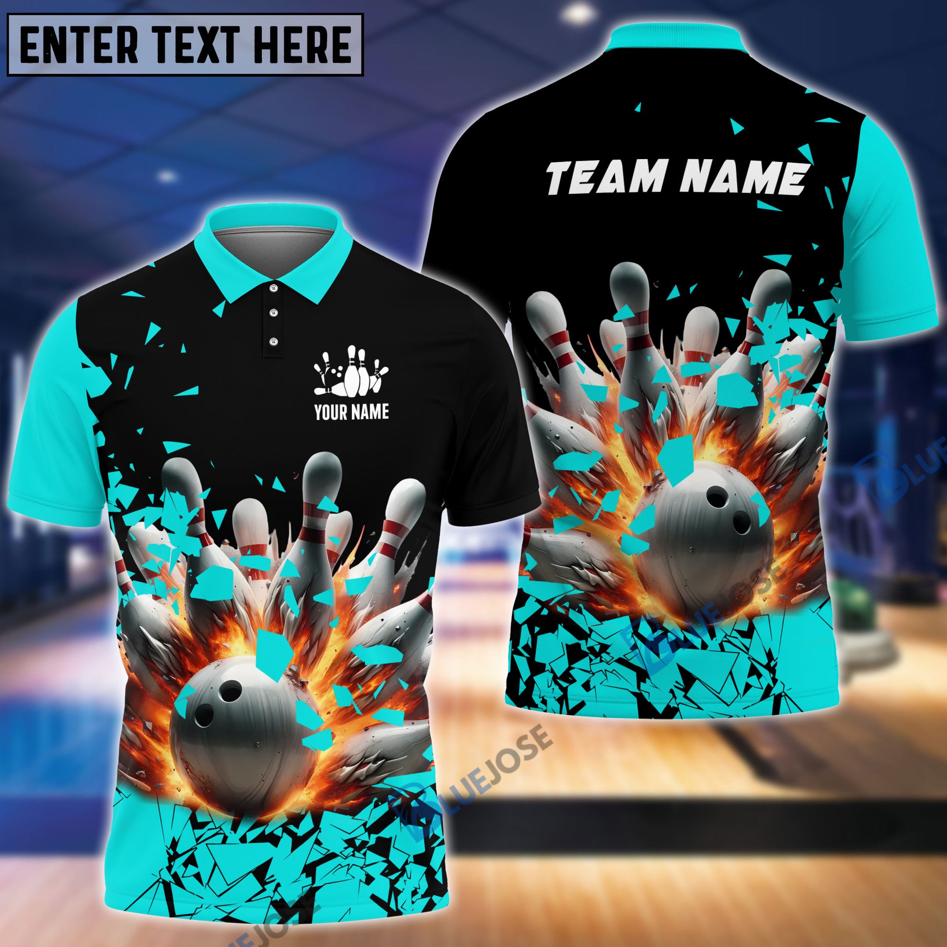 BlueJoses Bowling And Pins Diamond Broken Customized Name, Team Name 3D Shirt (4 Colors)