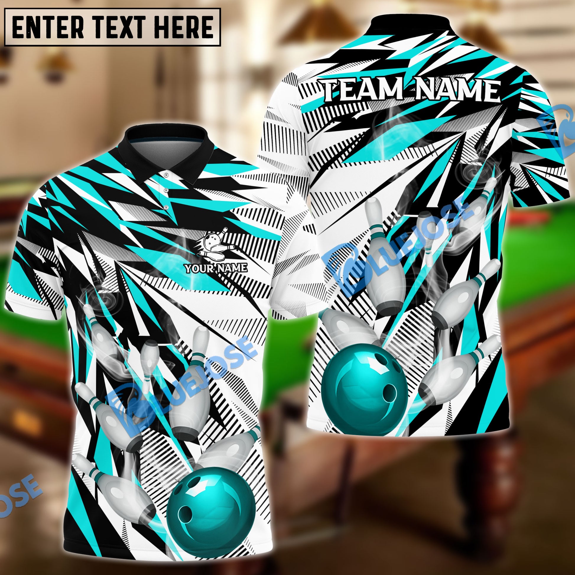 BlueJoses Bowling And Pins Diamonds Dart Personalized Name, Team Name Unisex Shirt