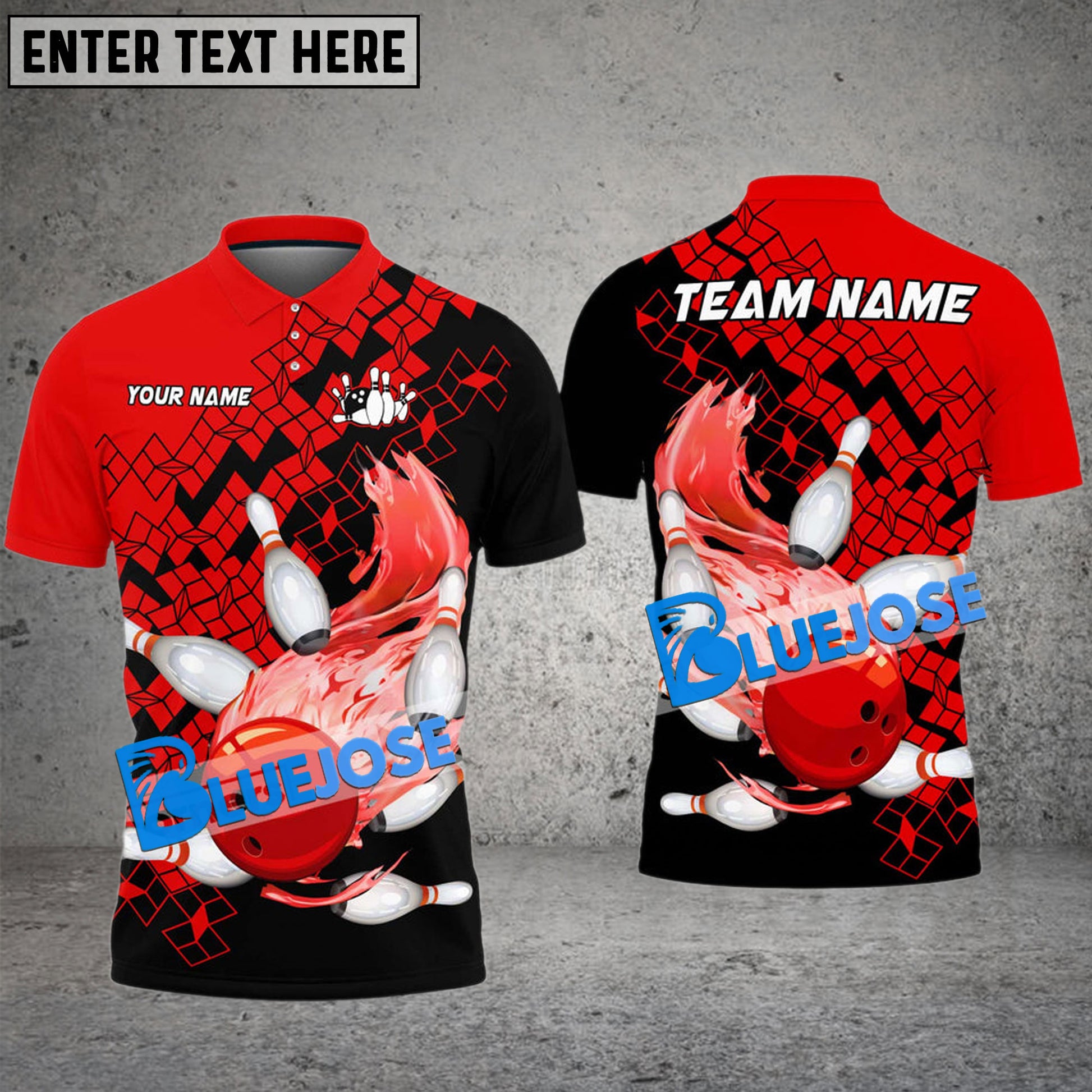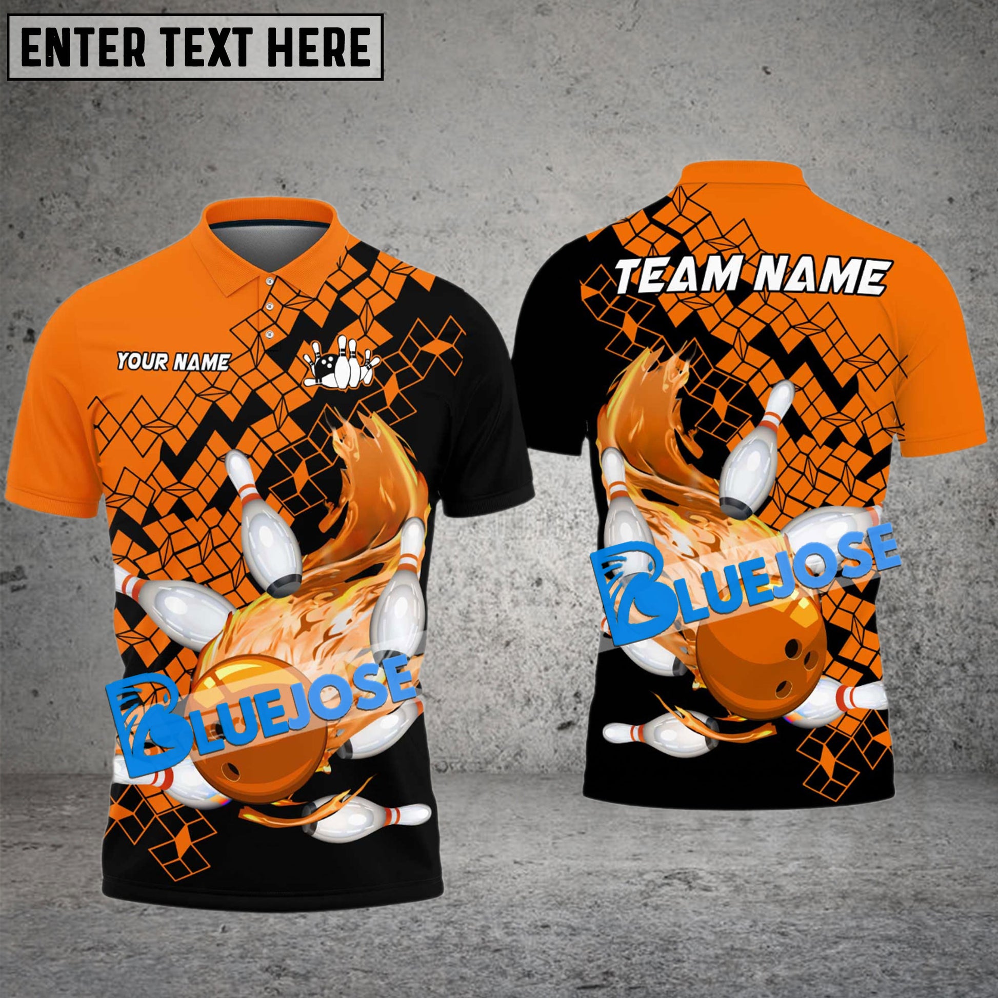 BlueJoses Bowling And Pins Falling Square Flame Multicolor Customized Name 3D Shirt ( 4 Colors )