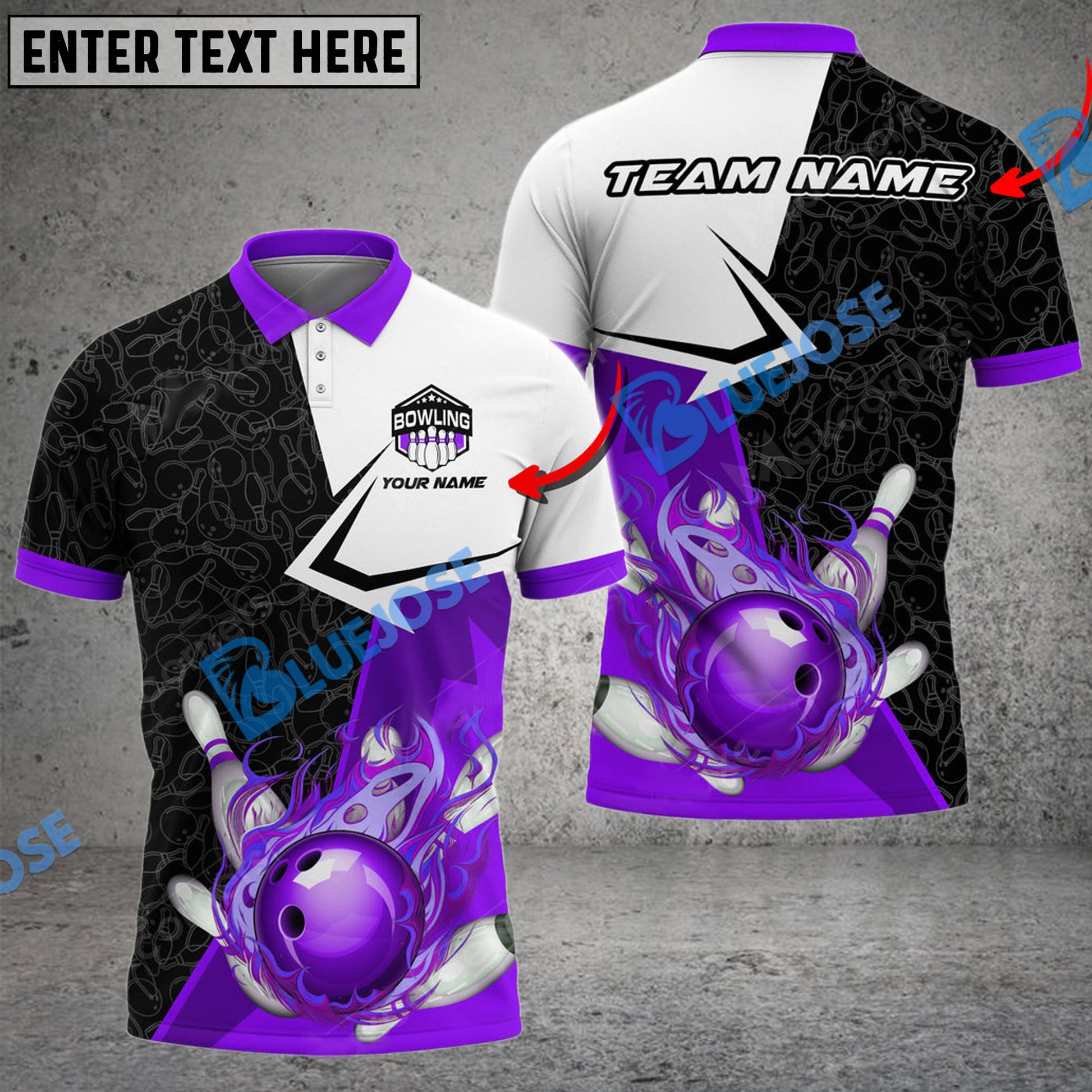 BlueJoses Bowling And Pins Fire Blur Multicolor Customized Name 3D Shirt ( 4 Colors )