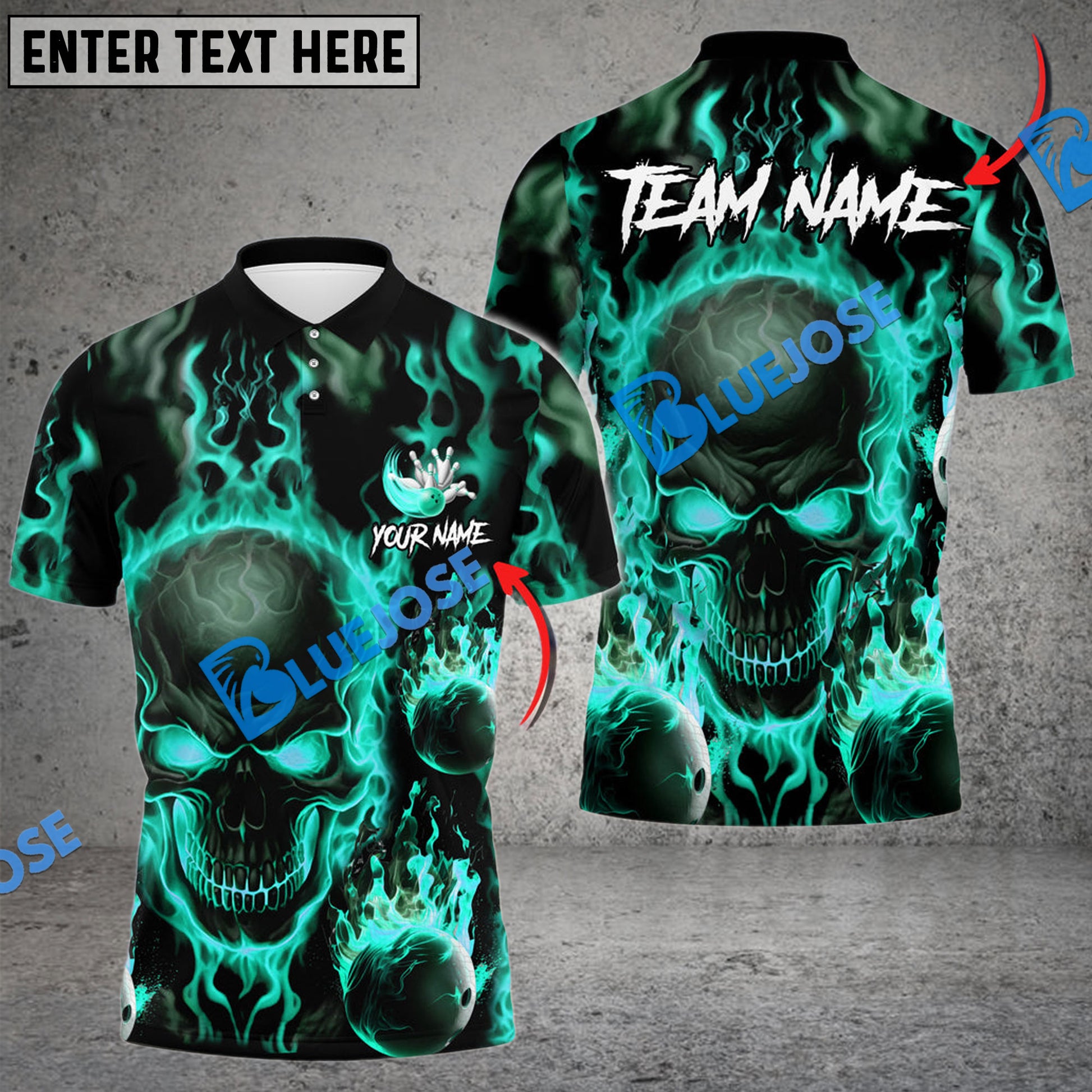 BlueJoses Bowling And Pins Flame Skull Multicolor Customized Name 3D Shirt ( 4 Colors )